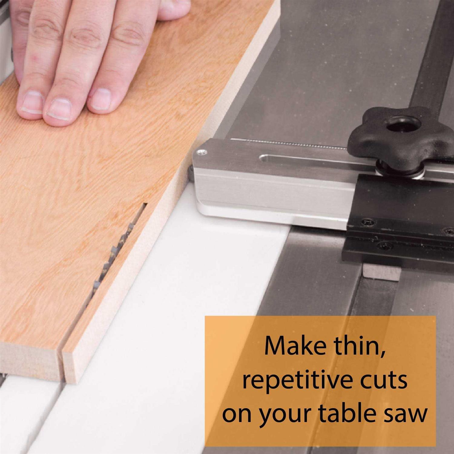 - Make repetitive thin rip cuts on the left side of the saw blade on your table saw.