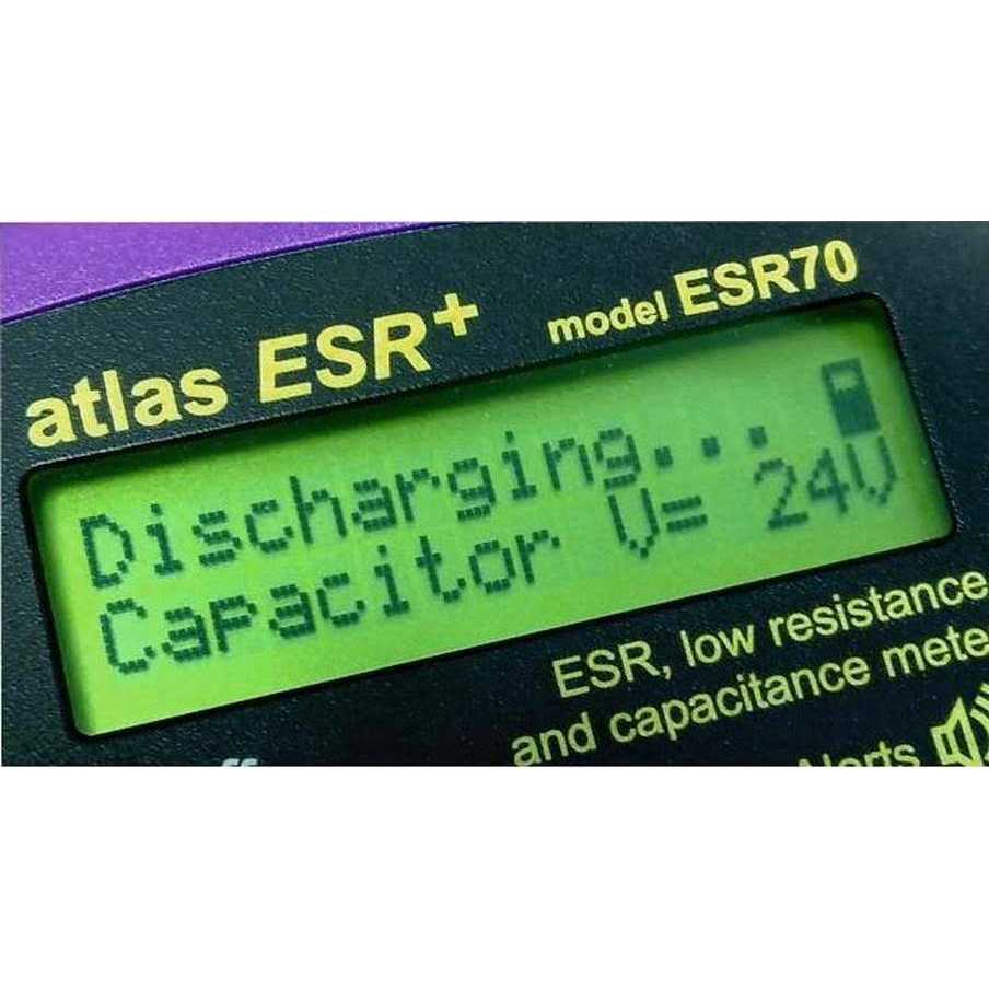 PEAK Atlas ESR70 Equivalent Series Resistance Capacitor Analyzer with audible alerts. This new model introduces new features including Audible Alerts and enhanced measurement range. Every measurement of ESR will be shown on the display as usual of course, but the unit will also produce a variety of tones depending on the value of ESR. And the tones themselves are surprising pleasant, including Bell-like pings (a couple of different types for ESR that is below certain values), and also a Beep-Barp type tone for ESR that is likely to be too high. There is also a reassuring Blip when the measurement has started and completed. The ESR measurement range has also been enhanced, now doubled, measuring from 0 to 40 ohms with a resolution as low as 0.01 ohms. This remarkably fine resolution is great for assessing large capacitors and even allows you to use the Atlas ESR+ for tracing short-circuits and finding the precise area of a PCB that has that invisible wisp of solder. Measuring a capacitor’s ESR (equivalent series resistance) is a great indicator of capacitor condition. The Atlas ESR PLUS offers instant results, if the instrument is switched on then just connect the probes to your capacitor and the analysis starts automatically. You can even use the Atlas ESR PLUS in-circuit, saving you the trouble of removing capacitors. When testing capacitors out-of-circuit, the unit will also display the capacitance.