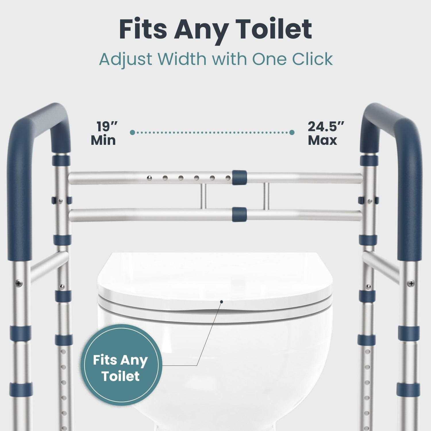 ENHANCED STABILITY FOR A PEACE OF MIND: Every time you lean on this product, you’ll feel a sense of security as if it’s a steady hand to hold. It’s not just about the support it provides, it’s about the confidence it instills in you, knowing that every detail has been engineered with your stability and peace of mind as the top priority. PELEGON toilet rail is lab tested, and can hold up to 350LB. Great for elderly, handicap and adults post replacement surgery (Knee Replacement / Hip Replacement) EASY AND TOOL-FREE ASSEMBLY: Imagine setting this up so smoothly that it feels like it’s a natural part of your home, without the need for an any tool or professional help. It’s designed with your convenience in mind, ensuring that the installation is a hassle-free process. This means you can swiftly move from unboxing to using it, spending less time on setup and more time enjoying the support it provides. FITS ANY TOILET: Pelegon’s toilet safety rails offer both height and width adjustability, guaranteeing a personalized fit for your toilet. Don’t worry about compatibility; they are thoughtfully designed to accommodate almost any toilet type. Easily adjust the height of our toilet rails from 24-30″ and its handles grab bars width from 19-24.5″. LIGHTWEIGHT DESIGN: Ease of handling and installation is a breeze with our lightweight frame construction. It’s designed to be lifted and positioned with minimal effort, perfect for quick changes or cleaning. The lightness doesn’t compromise durability but rather enhances the product’s user-friendliness. It’s an effortless addition to your bathroom, ensuring that even the most delicate of users can manage it without strain. Great for seniors and disabled.