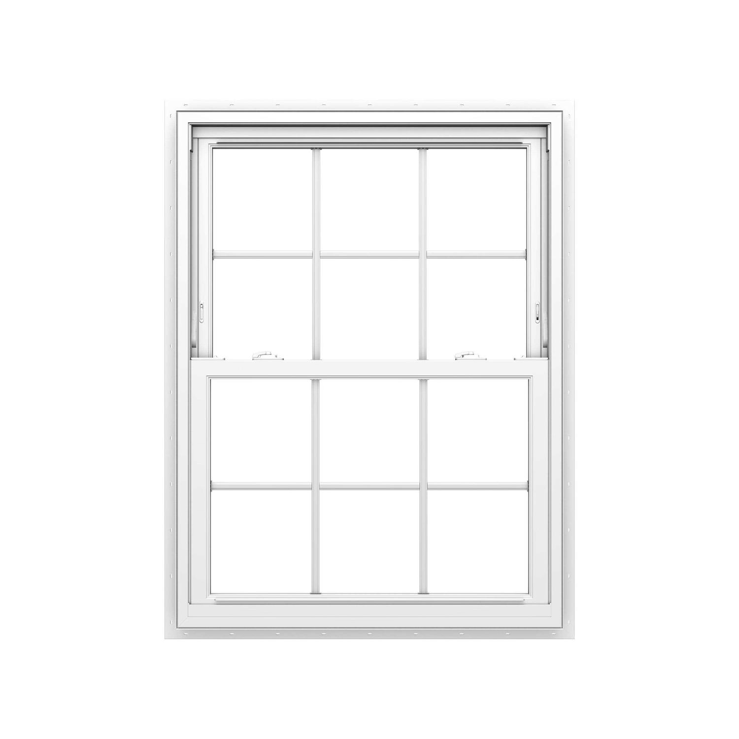 Pella 150 Series New Construction 31-1/2-in x 53-1/2-in x 4-3/16-in Jamb White Vinyl Low-E Argon Double Hung Window with Grids, Full Screen Included