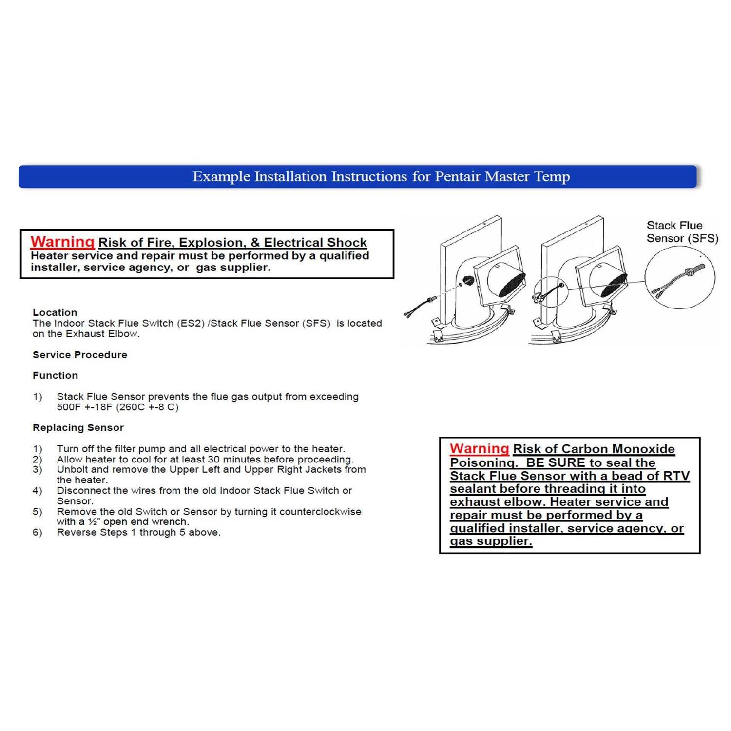 Pentair 42002-0024S Stack Flue Sensor Replacement Pool and Spa Heater Electrical