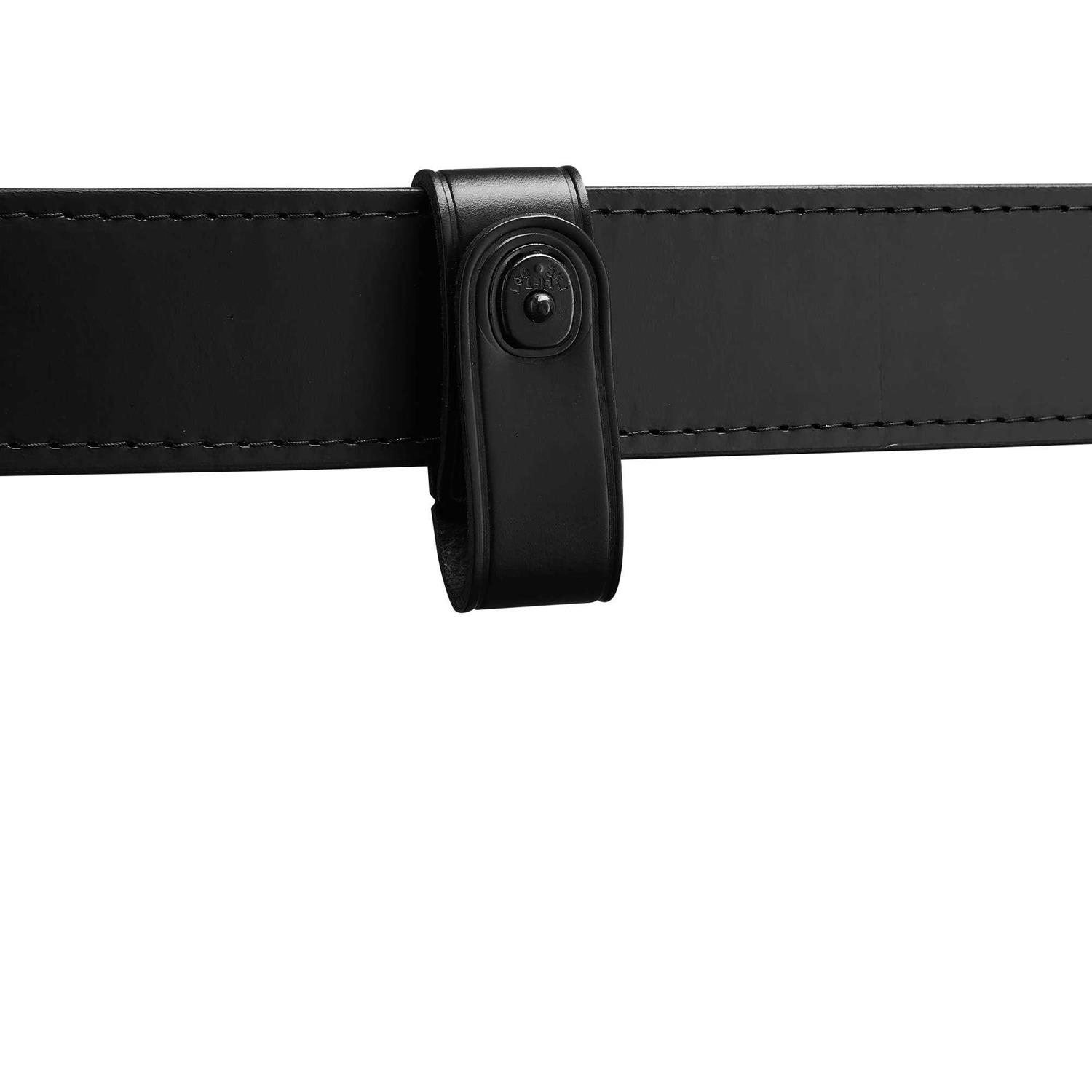 Simple and secure way to accommodate handcuffs to your duty belt- extra safety snap to ensure your cuff wont fall off your belt Handcuffs Strap will stand up to daily wear and tear. Made of 100% genuine leather. Fits duty belts up to 2¼” wide. Fits all cuffs This handcuff holder is extremely versatile and does not take up a lot of space on your duty belt. Made in the USA Perfect Fit leather handcuff strap snaps onto police belt with a 1 snap design, strap is narrow saving space on the duty belt for other accessories. Fits 2.25 in. (58 mm) duty belts.