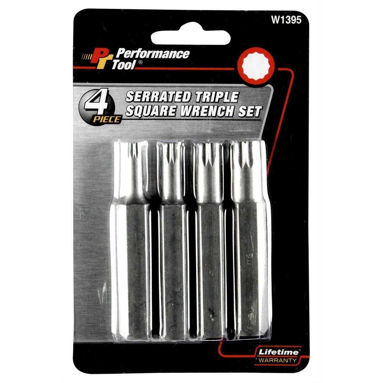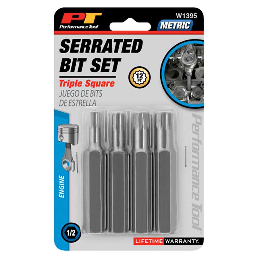 Serrated Bit Set has triple square drives that can be engaged at more frequent angles. Triple square drive fasteners are used in high torque applications.