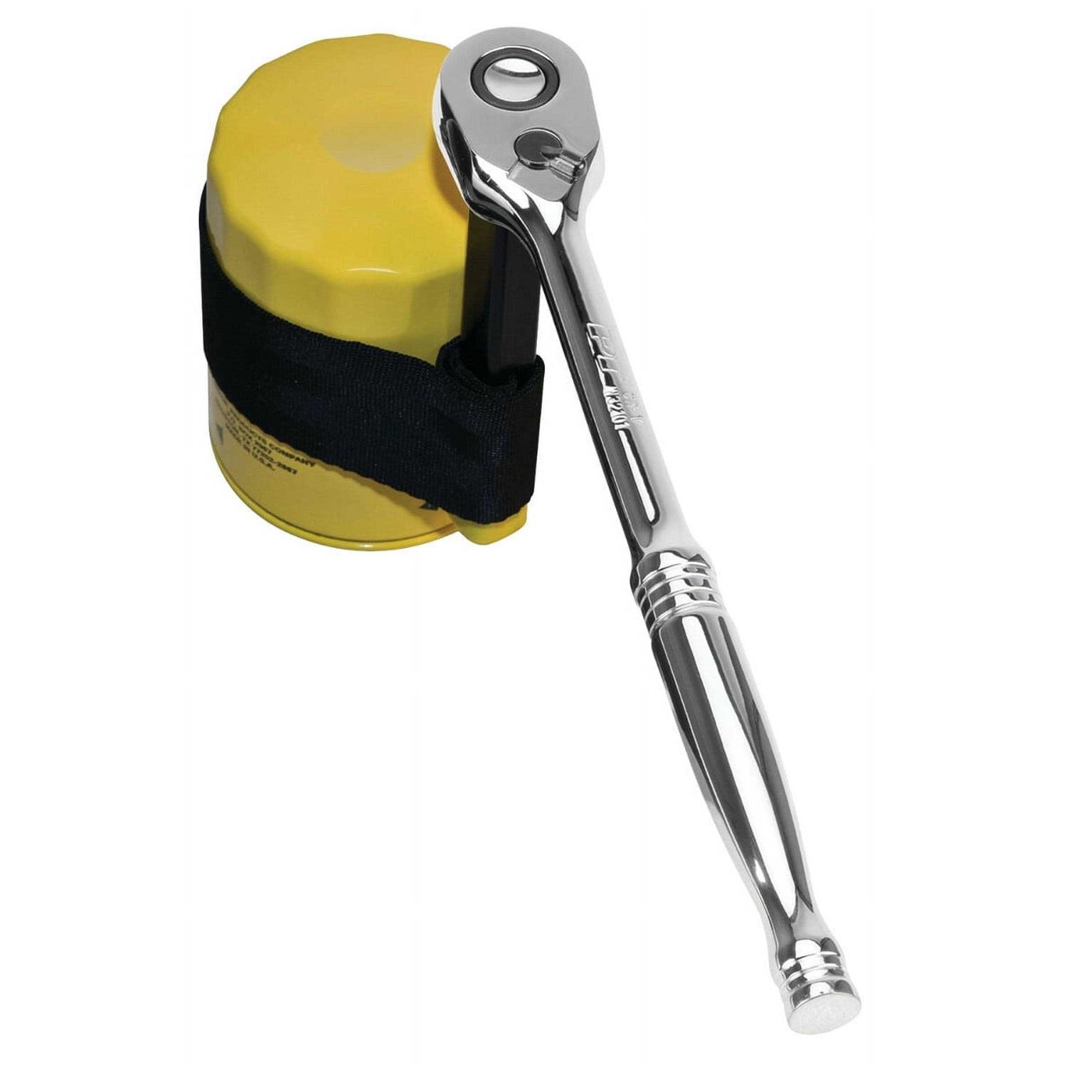 Range, Each – Performance Tool strap oil filter wrenches are versatile enough to get into tight spaces, while also grabbing filters in a wide range of sizes to remove or install. Just position the tough, no-slip strap over the filter, and then turn the chrome plated steel bar with a 1/2 in. ratchet for a tight grip around the filter.