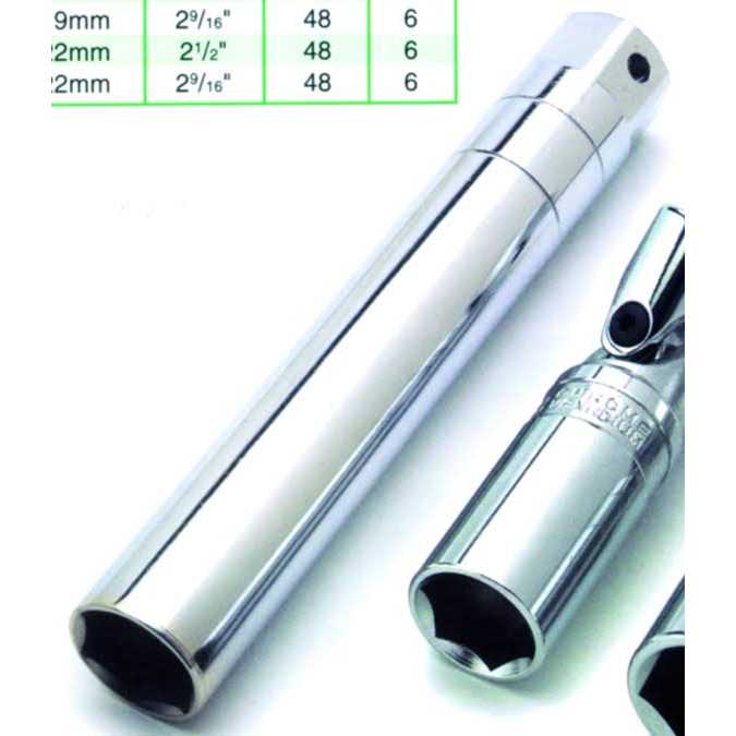 Performance Tool W38162: Spark Plug Socket, Extended Reach, 5/8 in. Size, Vanadium Steel, Chrome, 3/8 in. Drive, Each – Performance Tool spark plug sockets feature chrome vanadium alloy steel construction for strength and durability, with a polished nickel chrome plated finish to resist corrosion. They have recessed edges, large socket openings to reduce fastener rounding, and are stamped with sizes for quick identification. Performance Tool offers spark plug sockets individually in the sizes and lengths that you need.