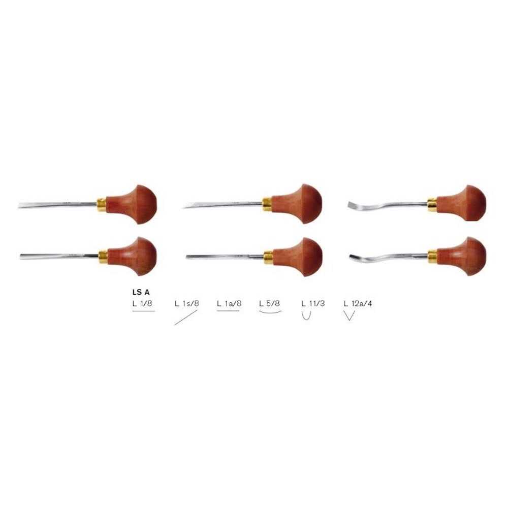 Swiss Made Square tang in handle Durable octagonal shape hardwood handle Special alloy chrome vanadium steel Hand-Sharpened Pfeil carving tools and Pfeil carving tool sets are “Swiss Made.” Swiss Made implies reliability and precision. Pfeil carving is undoubtedly the finest carving tool on the market. Pfeil carving tools are second to none in terms of manufacturing quality and durability. Designed for wood block carving, yet furniture makers and decoy carvers like their 4-3/4″ length for delicate, intricate work. Hardwood handles fit the palm of your hand so your fingers can guide and control the action of the razor sharp blade. Half round handles make long, low cuts easier and prevent the tools from rolling off your workbench.