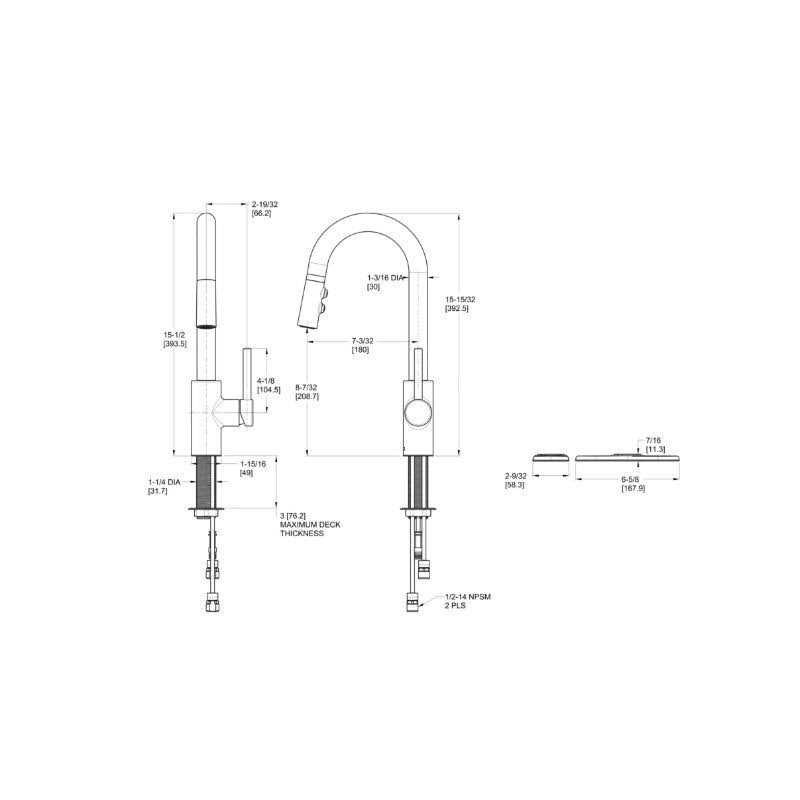 The Stellen kitchen collection combines sleek, simple lines and contemporary curves to create a modern faucet designed to meet today*s demand for popular urban and euro designs. The forward only handle underscores ergonomic function while the pull-down spray head allows easy access to spray and stream buttons perfect for up-close tasks. Included is an optional deck plate for sinks with 3 faucet holes. Stellen is offered in both a full size and a smaller bar/prep size to fit every kitchen space perfectly.