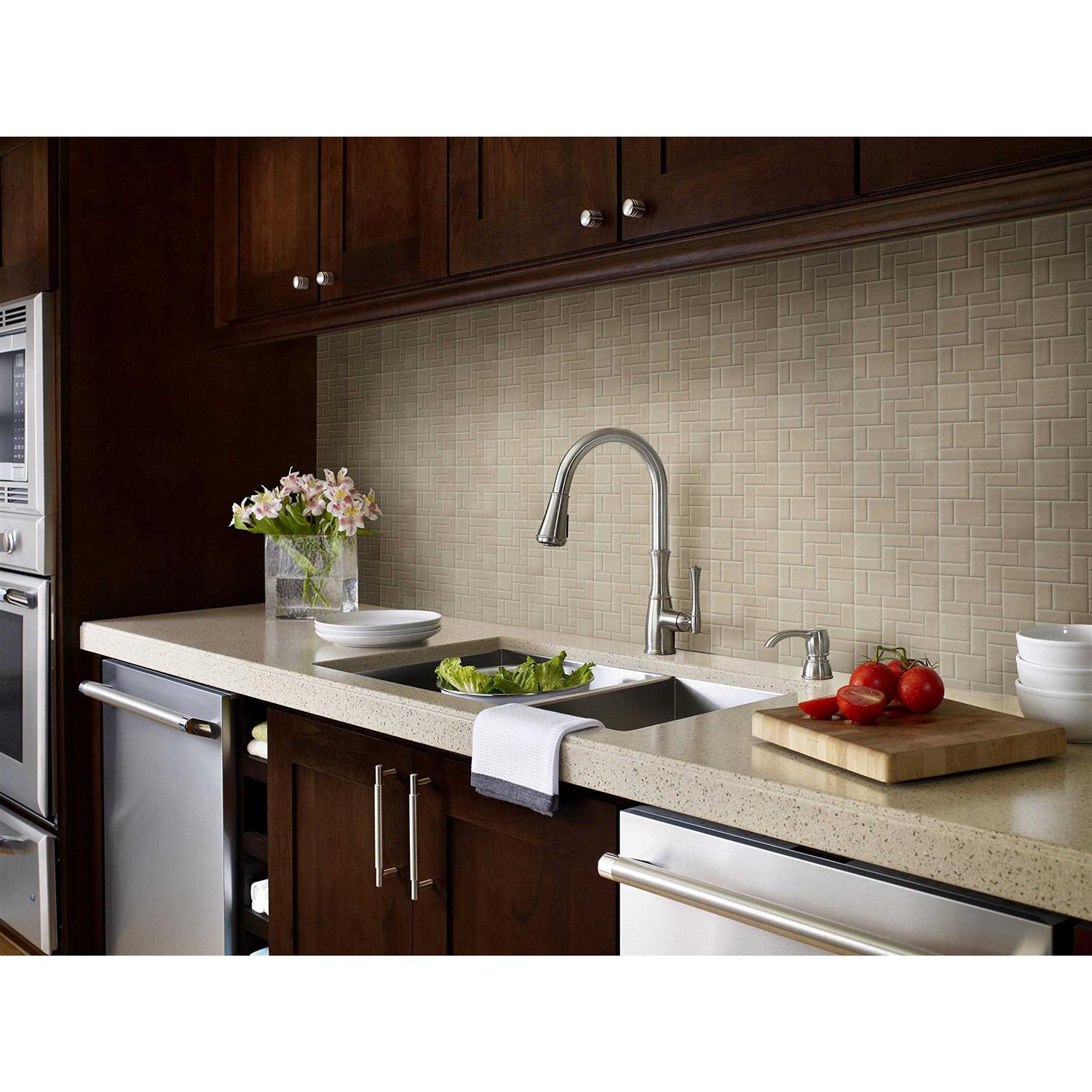 The Wheaton pull-down kitchen faucet combines traditional aesthetic with modern functionality. Graceful curves and soft pleated lines reflect classic styling that complements traditional home decor while modern features such as spray and stream modes help make life in the kitchen easier and more efficient. Wheaton also features our new advanced docking system – one quick snap s the spray head stays securely in place after every use. Compatible with 1 2 3 or 4-hole sink configurations Wheaton fits perfectly into any kitchen.