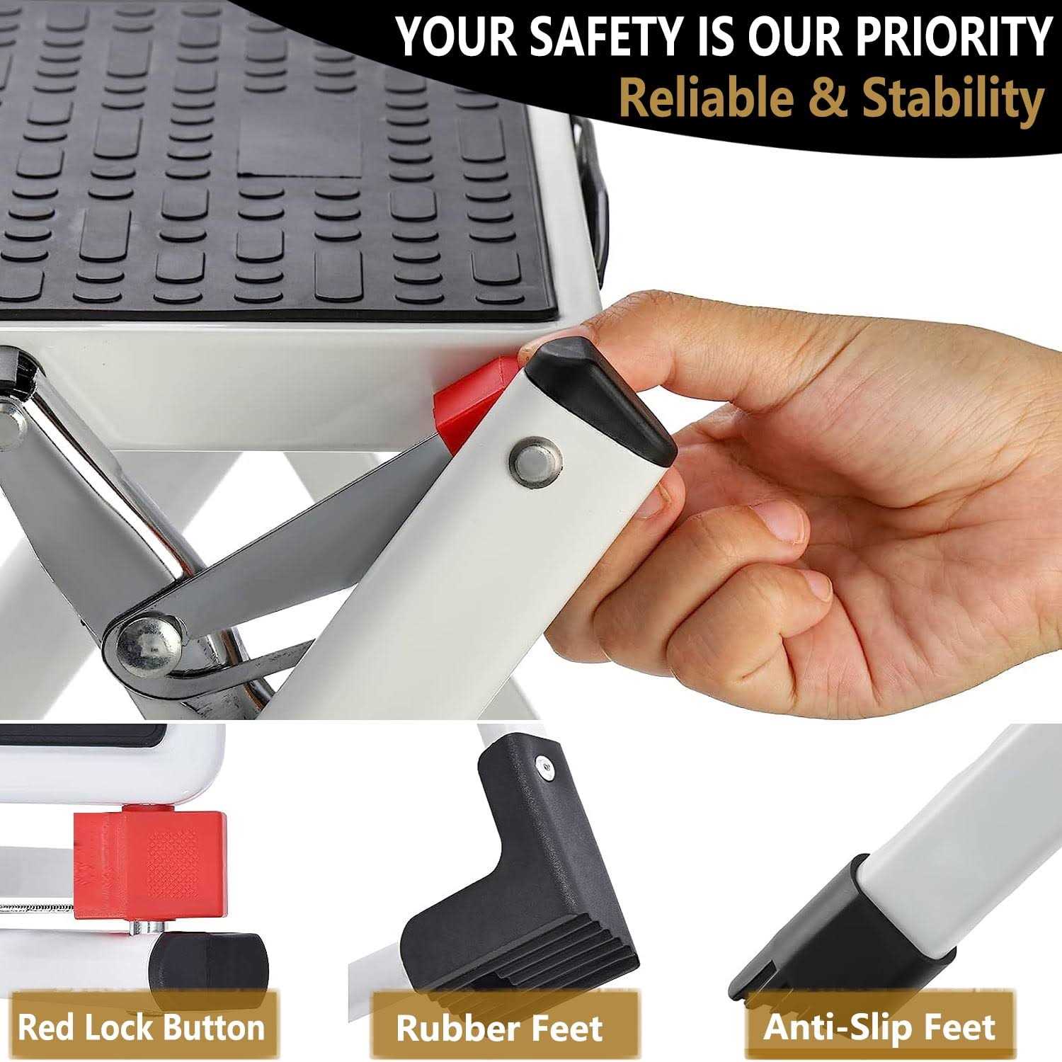 PHANCIR 2 Step stool Ladder, 330 LBS Capacity Folding Step stool for adults with Anti-Slip Pedals Large Foot Pads, Heavy Duty Steel Sturdy Portable Step Stool Ladder for Kitchen, Household, Office.br> Your ultimate companion for everyday tasks that require a little extra height. Safety, stability, and convenience are at the core of this innovative design, making it the perfect choice for your home or workplace. PHANCIR 2-step stool ladder is crafted from high-quality materials, ensuring a strong and stable structure. The anti-slip pedals offer a secure foothold, reducing the risk of accidents. Whether you’re reaching for items in the kitchen, garage, or warehouse, this ladder provides the stability you need. Upgrade your daily routines with our 2 Step Stool Ladder – a perfect combination of safety, stability, and convenience. Say goodbye to wobbly chairs and unsafe alternatives. Invest in your peace of mind today!