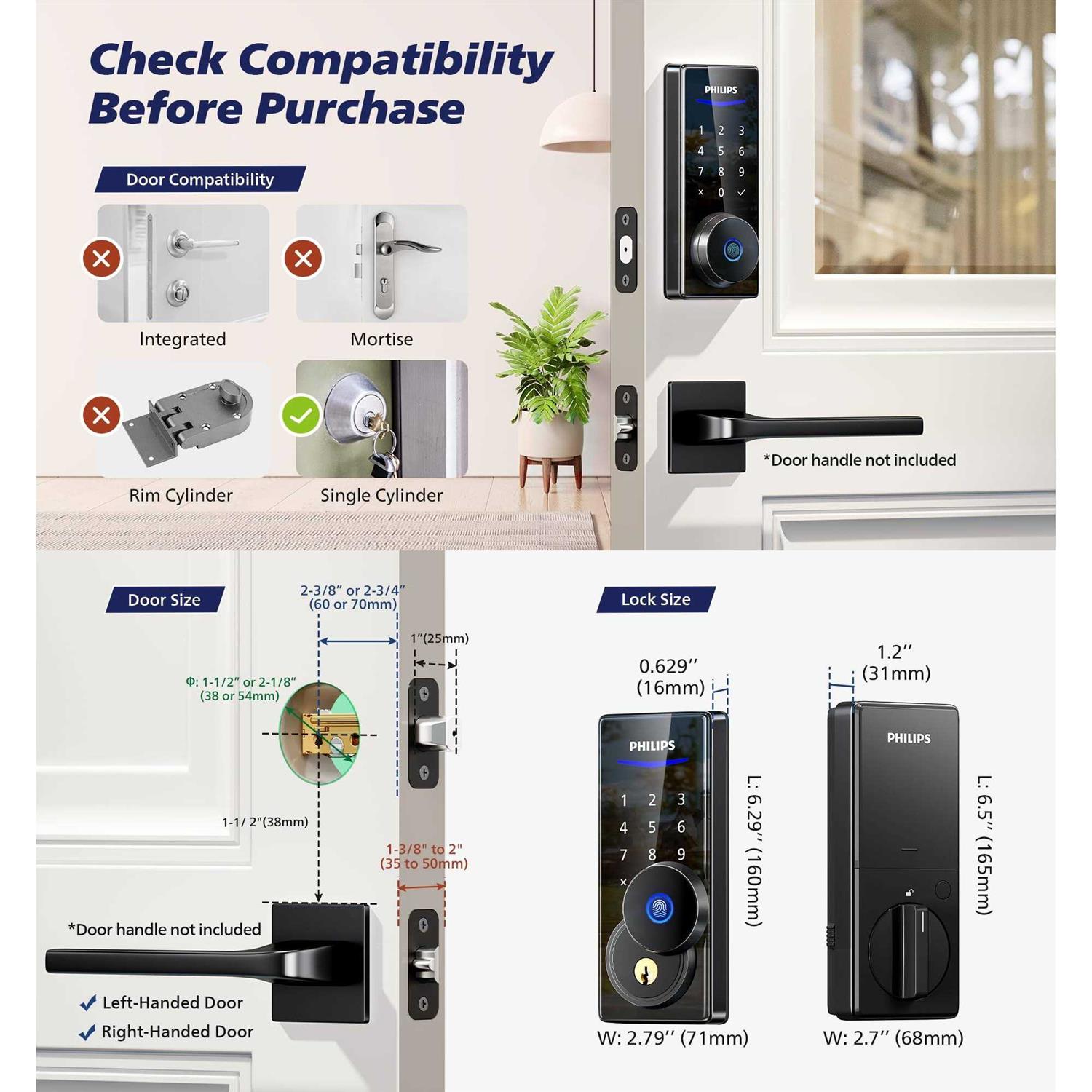 Philips Fingerprint Door Lock Touchscreen Digital Keypad Deadbolt with Keys