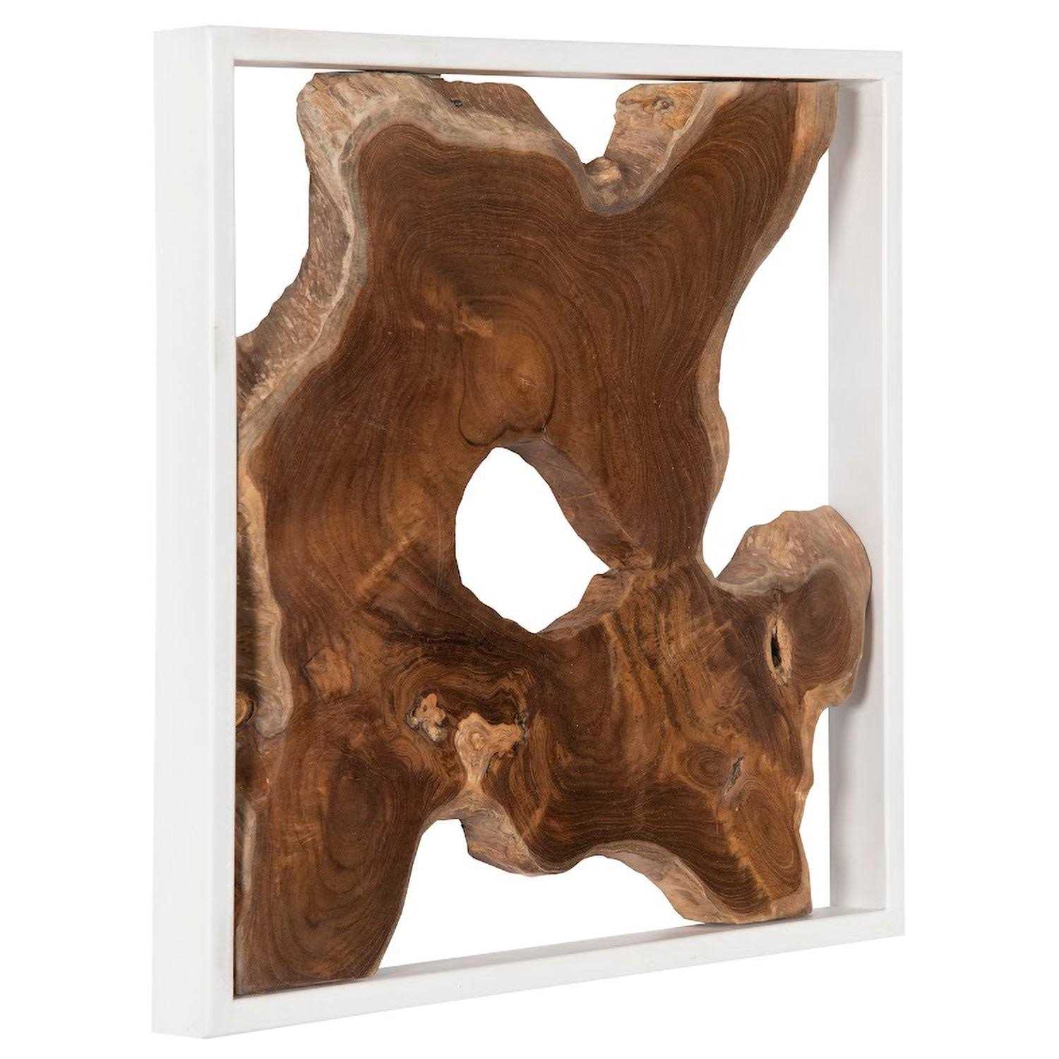 This White Framed Slice Wall Tile features a slice of teak wood, highlighting the warm tones and textural grain. Choose from a variety of frame colors to match your modern organic decor. Perfect for home or office. Dimensions: N/A.