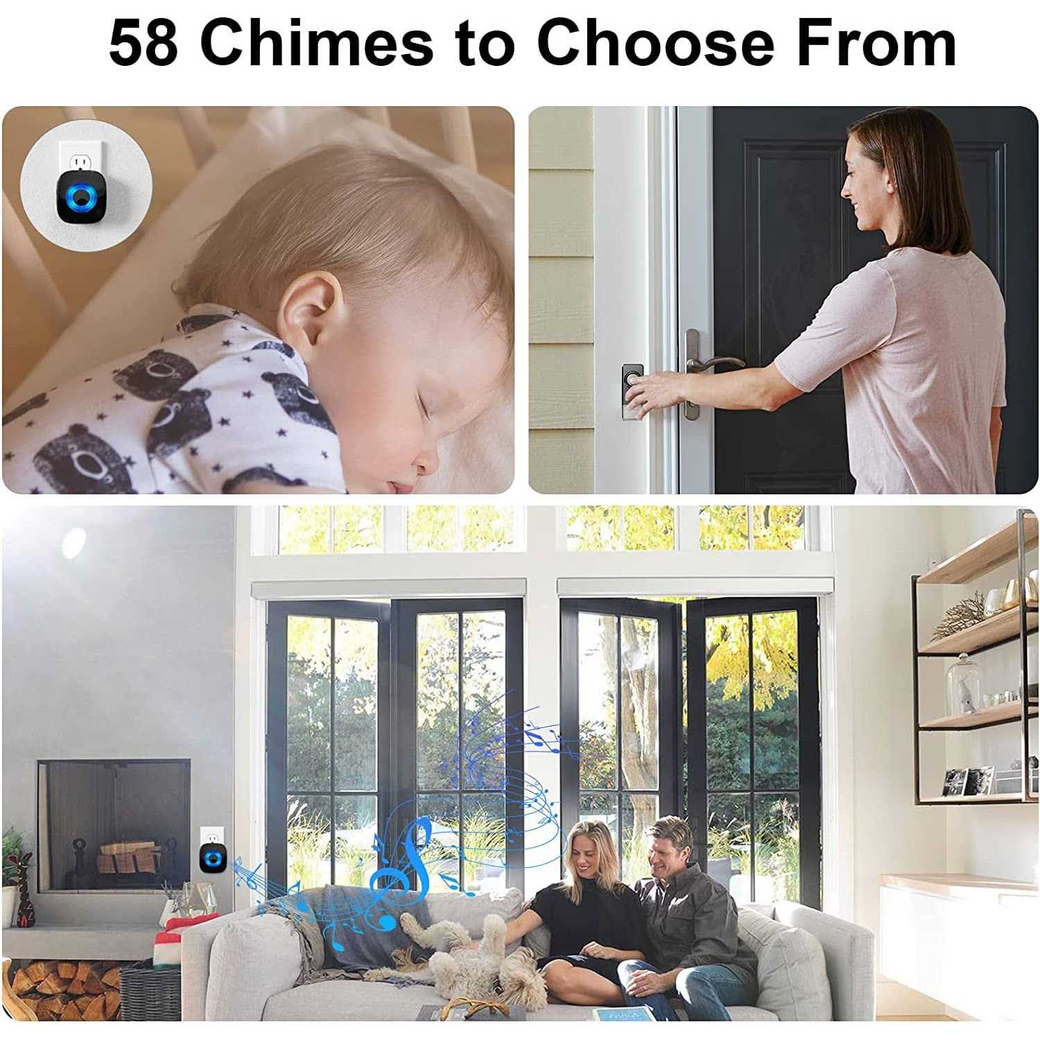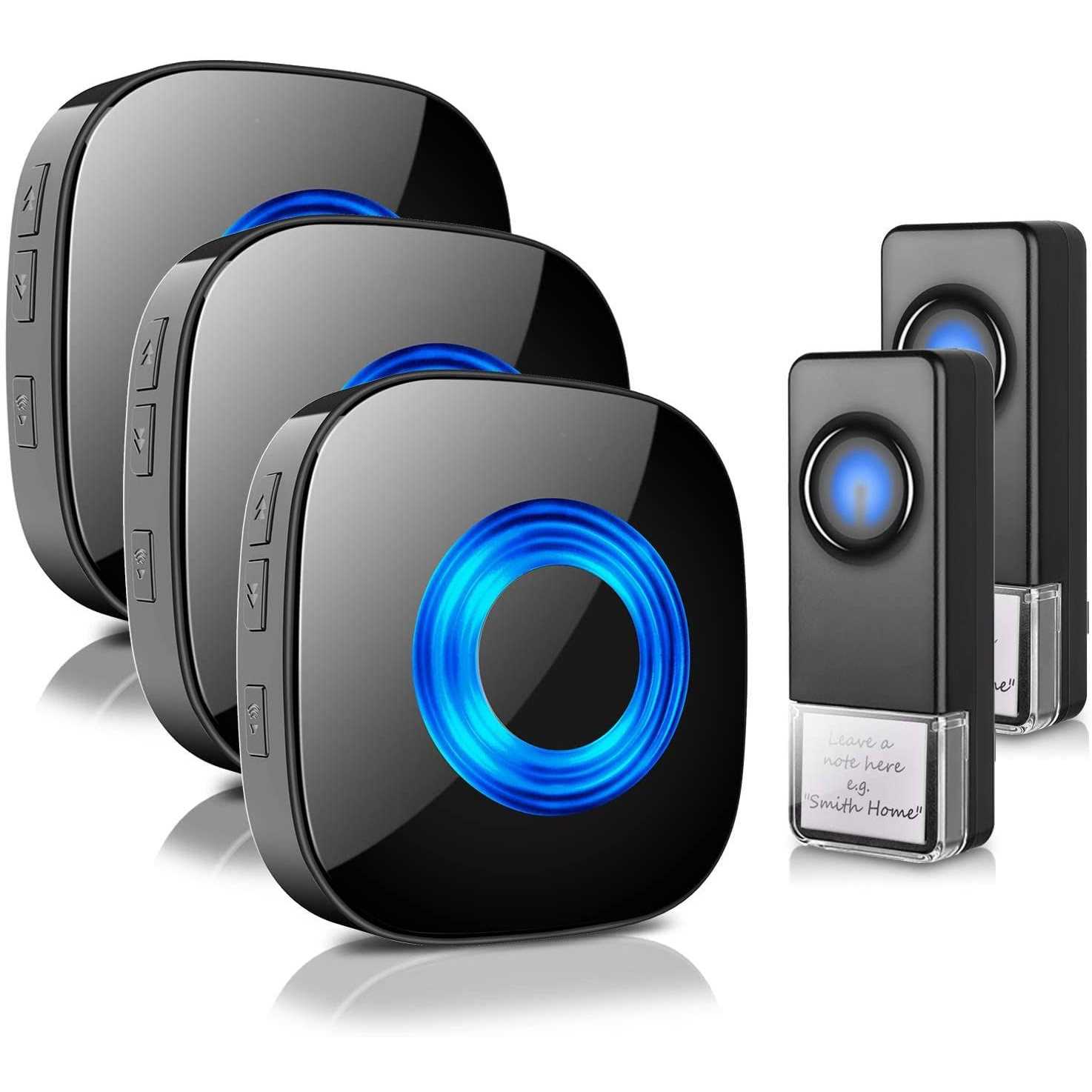 Loud Enough and with Bright LED Indicator for the Hearing Impaired -PHYSEN UPGRADED WIRELESS DOORBELL 2 remote push buttons and 3 plug-in receivers for you to DIY your house and you can program each push button to a different tone so you can know which door is someone at. YOU WILL NEVER MISS ANY VISITOR! 58 MELODIES & 5 VOLUME & MUTE MODE Our doorbell receiver offers 58 melodies for you to choose. At the same time you can also pair different ringtones for different stations so that you know which door is ringing. 5 levels of adjustable volume from 0-110 dB the maximum volume of 110 dB can be suitable for the hearing impaired or the elderly the minimum volume of 0 dB can be suitable for babies or night. Waterproof Doorbell Button The impressive IP55 dustproof and waterproof rating and the approved working temperature range of -22to 158make the sender button tough enough to withstand almost any outdoor conditions.The 23A 12V battery has an extremely long life of up to 3 years. And since the extremely low power consumption you don’t have to replace batteries frequently. Memory Function Our PHYSEN doorbell wireless can remembers your last melody and volume level after a power outage; No need to reset the previous settings really save your time Loud Enough With Physen Wireless Doorbell you will never miss any visitor! Bright LED Indicator for the Hearing Impaired The doorbell rings and the LED flashes that give you a visual form of notification(an excellent feature for the hearing impaired). Easy to Set Up You don’t need any electric wiring. Extremely handy and easy to install just plug the receiver into an electrical outlet and the transmitter use a battery(included). 2 way installation: screws and double-sided adhesive tapes included for easy be fixed. Doorbell Door Sensor Door Bell Door chime Wireless Doorbell Doorbell Chime Wireless Range 1000 ft 600 ft 1000 ft 600 ft 1000 ft 1000 ft Volume Levels 0-110dB 0-110dB 0-110dB 0-110dB 0-110dB 0-110dB Melodies 58 58 58 58 58 58