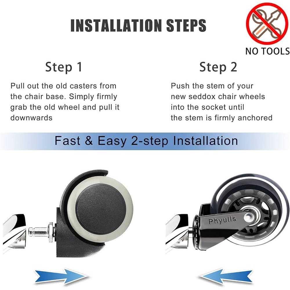 Why you need them? Are you tired of always hearing that annoying squeaky sound coming from your office chair? Do you have problems with the lack of flexibility of your chair wheels because they always get stuck on the rug? Are you searching for a way to protect your hardwood floors from your chair? Not only are the rubber wheels offering more flexibility to move around your office, no matter the surface, but the polyurethane will protect your hardwood floors from any scratching or extra pressure, allowing you to move freely while taking care of your premium floors,transform your dull chair into a beautiful, modern piece of furniture for a minimum investment ! Easy to install without tools or hardware. Simply pull the old wheel out and push it into place.