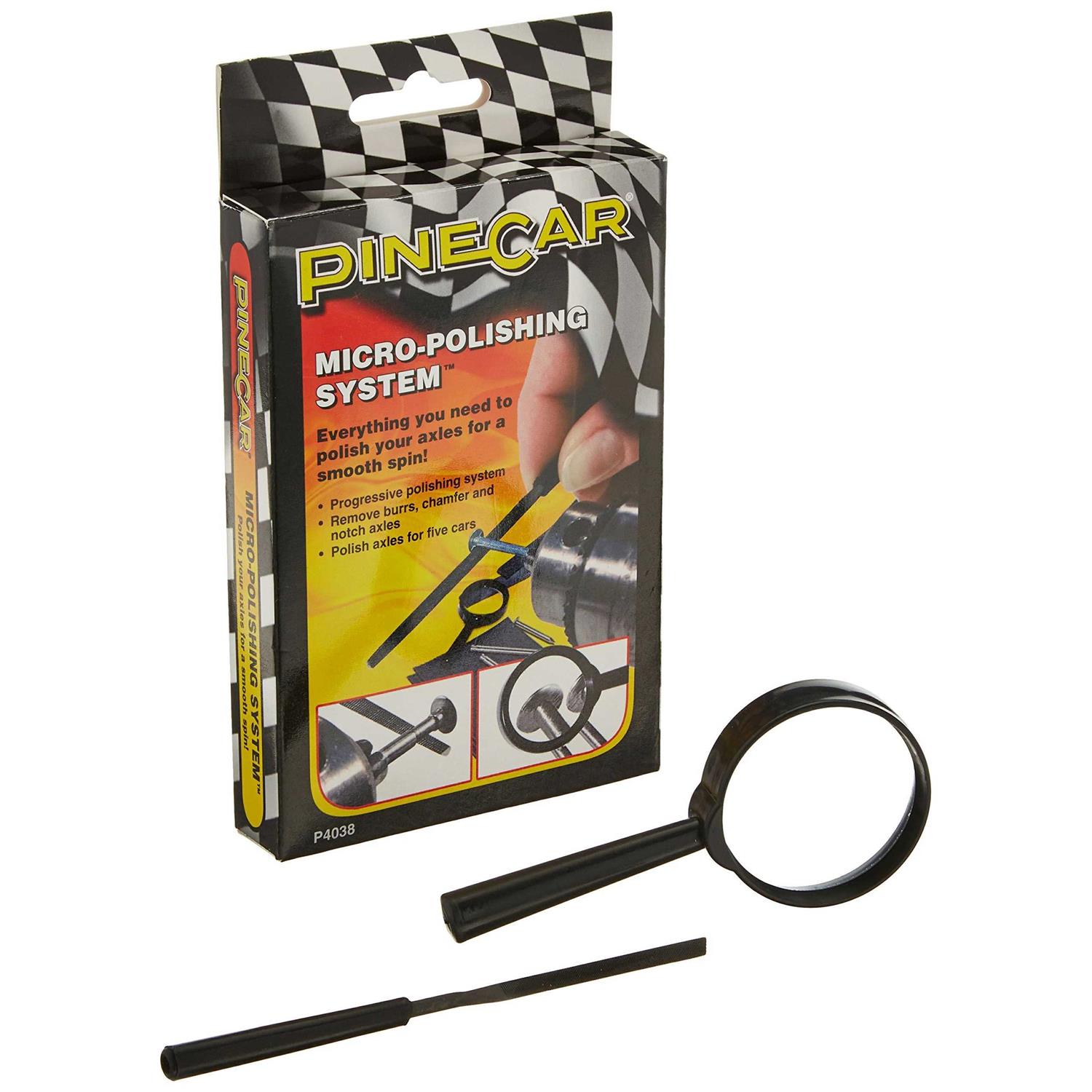 Progressively polish axles to reduce friction for a smooth spin. Kit includes enough product to polish the axles of five cars. For a final finish equivalent to an 8000-grit polish, follow up with the Diamond Finishing Kit (1040392).