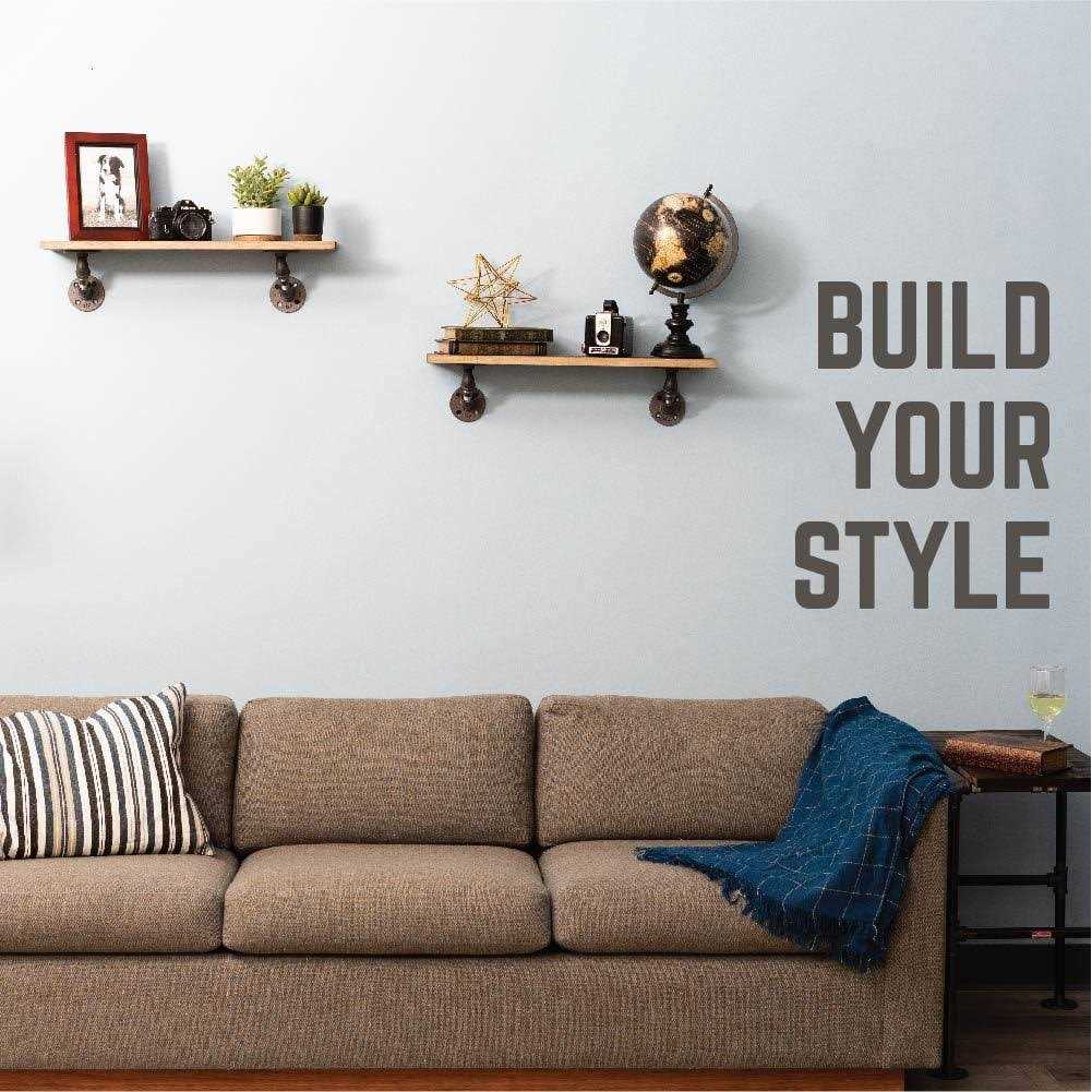 Add eye-catching style to your new set of shelves with these heavy-duty, pipe shelving brackets. Cast iron fittings and black steel pipe pair impeccably with woods of various colors and sizes. Treat your visitors to your sense of style and attention to detail. These Pipe Decor brackets fit a surprising number of looks and aesthetics, including steampunk lighting, industrial, factory, French country farmhouse, vintage, retro reclamation, and D-I-Y. You will know Pipe Decor parts and accessories when you hold them. Beauty and beast. Strength and style. This is real industrial pipe for your creative design needs. Accept no substitutes. All our pipe and fittings come coated in a light industrial grease to prevent rusting. Clean and seal each piece, before assembly, to ensure that they stay rust-free. After cleaning, seal the pipe with polyurethane spray to protect it from rust and scratches.