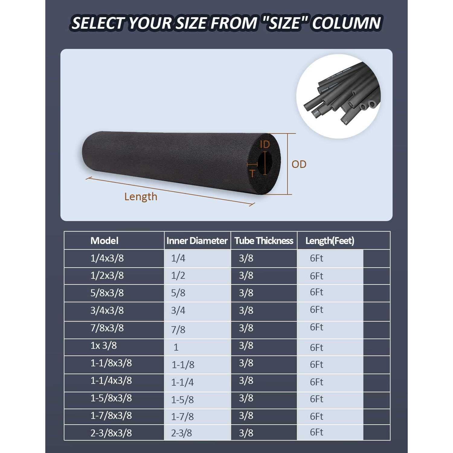 Pipe Insulation Foam Tube Foam Tubing for AC Unit, Guitar Stands, Exercise Machine Handle and Roof Rack