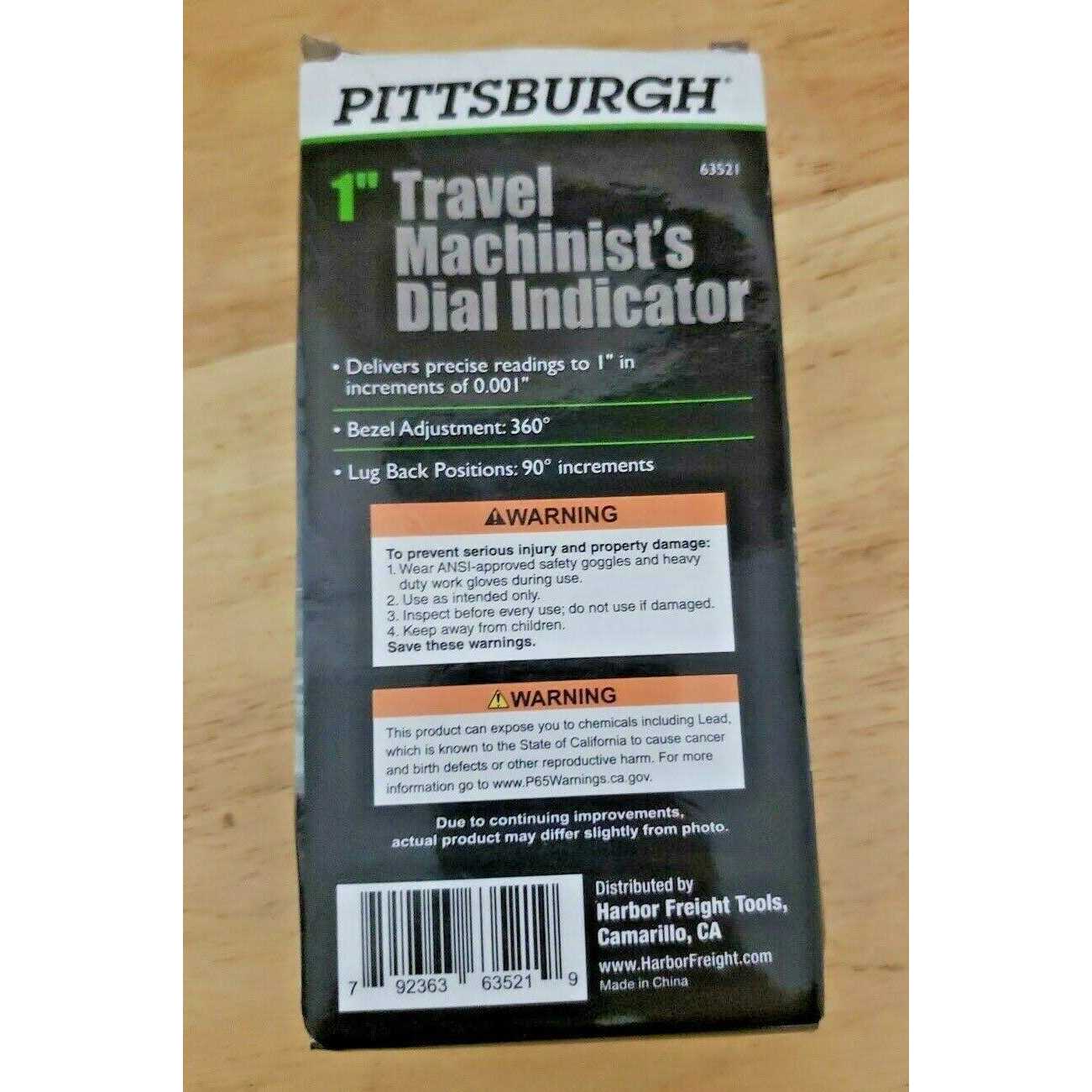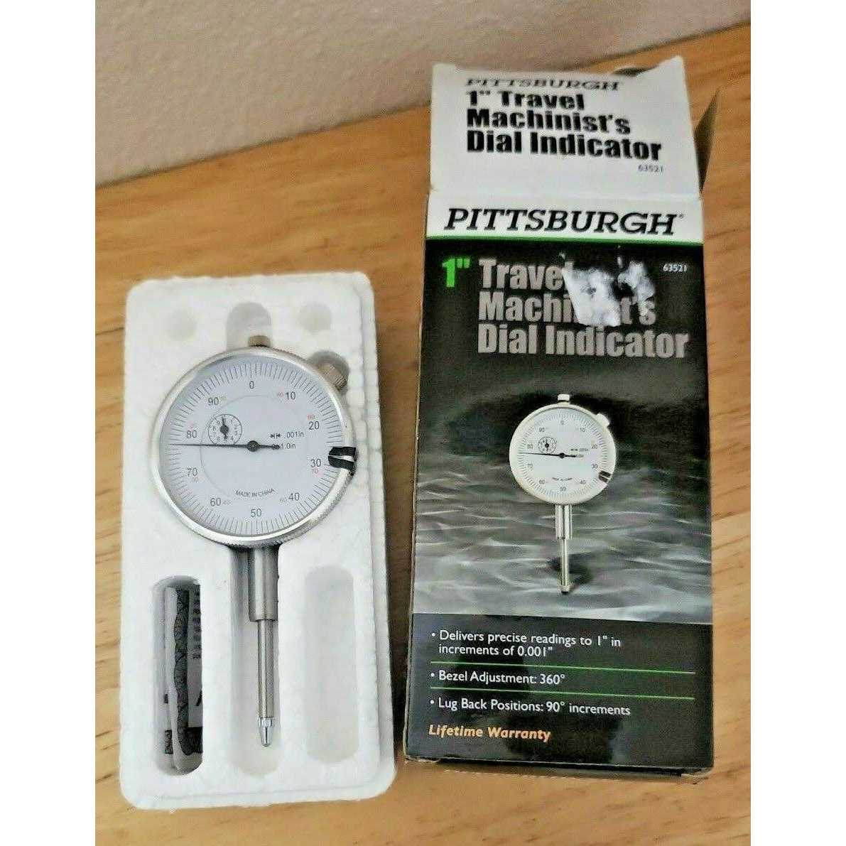 Travel Machinist’s Dial Indicator 63521(233)Pittsburgh ProThis machinist’s dial indicator delivers precise readings up to 1 in. The 360 degree adjustable bezel with revolution counter hand is marked with micro-fine increments.