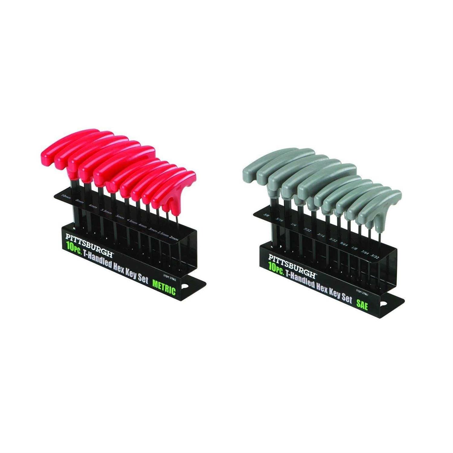 Pittsburgh 20 Piece T-Handled Allen Wrench Bit Hex Key Set SAE & Metric with Stand