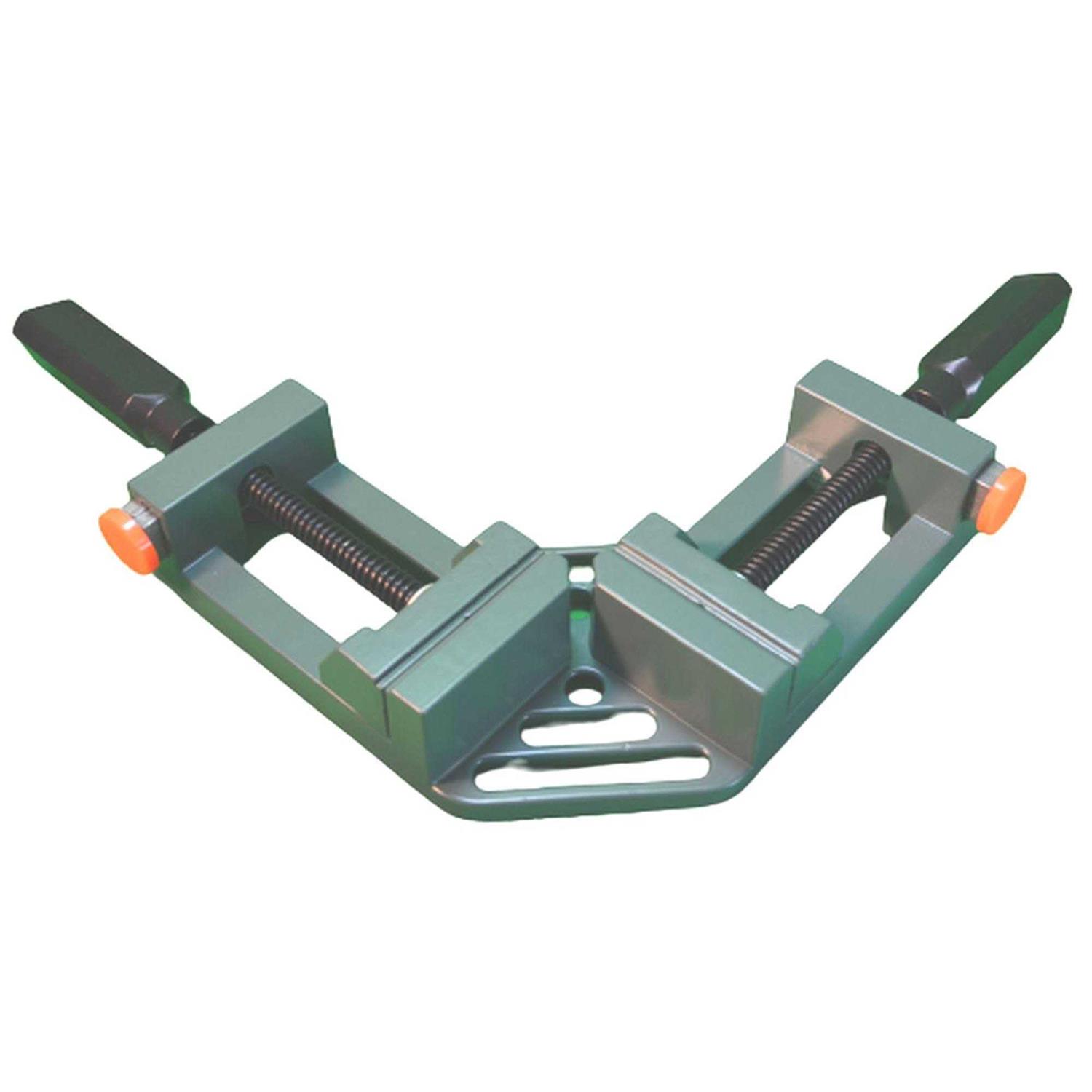 Use this corner clamp for fast and precise 90 degree corner clamping. Constructed of cast aluminum, this corner clamp features a heavy duty handle and jaw protector caps to prevent work piece marring. The quick-release jaws allow fast setup and better project efficiency making this an easy-to-use clamp for the novice or professional.