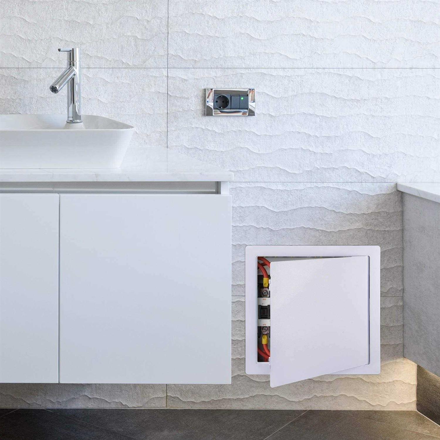 【Durable&Colorfast】Reinforced Hinged plumbing access panel for drywall is made of high impact polystyrene plastic with UV Stabilized.WILL NOT fade or corrode.Can withstand up to 200 °F high temperature and not deformation. 【Easy Painted】The surface of wall access panel is textured for increased surface area and maximum adhesion.Can be easy painted to any color match the existing wall color. 【Easy Install】The drywall access door contains only one SELF-CONTAINED access panel. Requires no framing, screws, latches or fasteners. You just need to check the cut out size of the wall . Attach to wall surface using adhesive (not included). Very convenient for DIY. 【Widely application】Plastic access panel is designed to provide an aesthetically pleasing way to hide cables, unsightly holes in the ceiling or wall. Widely used in plumbing,security systems, HVAC, duct systems, sprinkler system,water valves and all types of renovations. Any question, please feel free let me know.