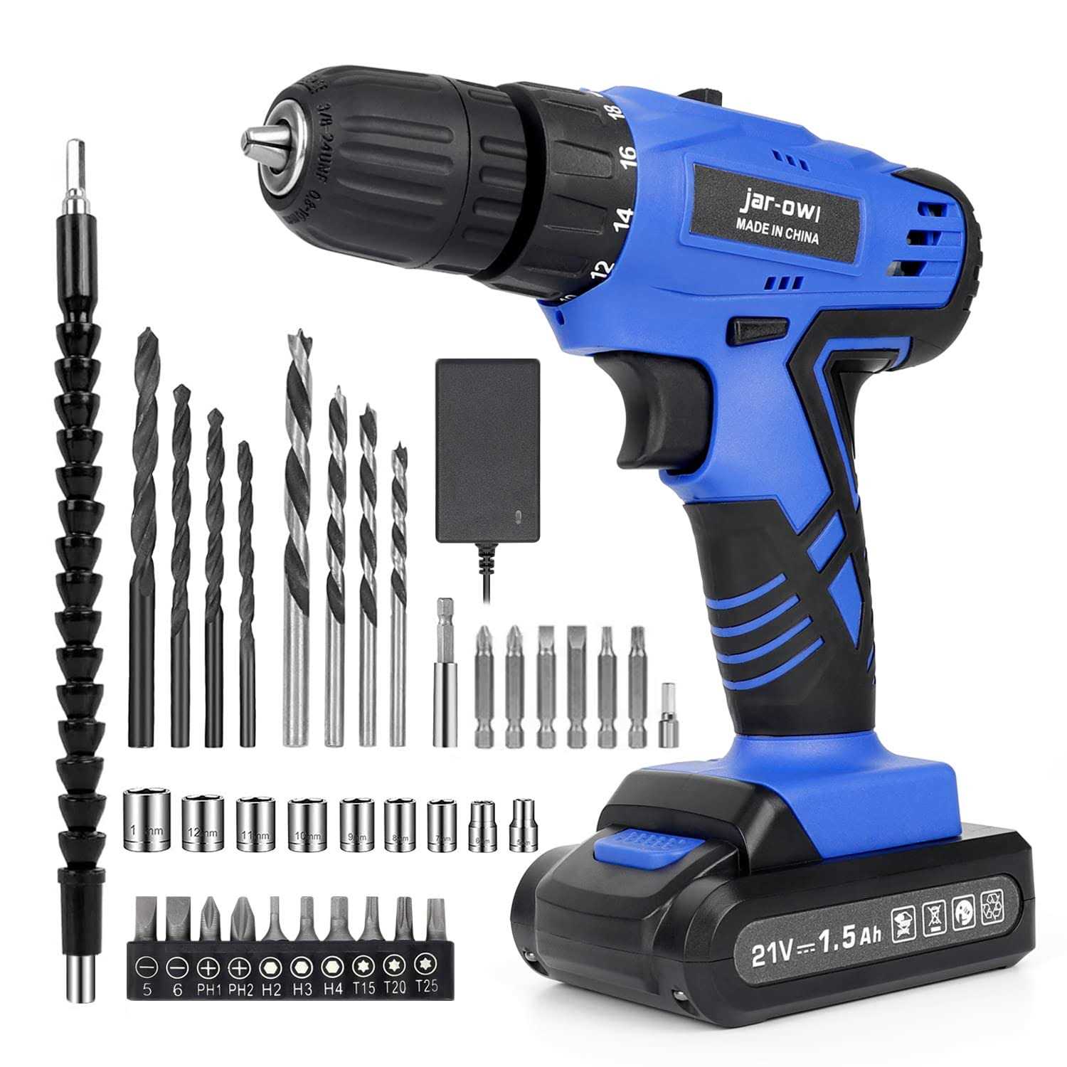 Portable Power Drill Set with 37pcs Drill Bit,21V Cordless Drill Driver Kit with Battery and Charger,Jar-owl Home Tool Kit with Electric Drill for