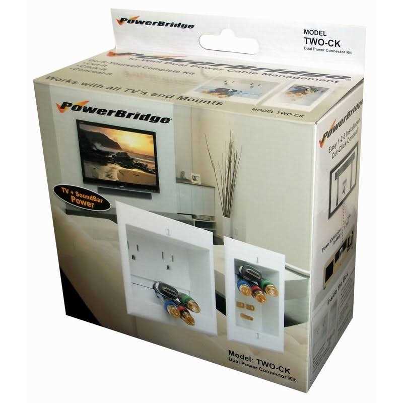 Dual outlet in-wall cable management system for wall mounted flat screen led, lcd, and plasma televisions. this kit includes two power outlets for mounting either two (2) tv’s or one (1) tv and one (1) audio visual accessory such as a soundbar No more messy cables hanging down the wall between the tv and the floor. no electrician needed with snap together power connectors This system allows for wall mounted tv’s to hide low-voltage cables and wires routed behind the wall for a clean look. The included in-wall powerconnect cable and 6-foot power cord is code compliant. does not include hdmi cables or other low voltage audio visual cables. Included recessed wall mount plates are hidden behind flat screen tv mount and should work with the thinnest tv mounts and thinnest tv’s on the market. Installs within standard construction walls 2×4-2×6 framming Conceal cables and power for your wall mounted TV Designed to simplify wiring behind wall-mounted flat-panel TV No wiring, simple snap together Power Connectors make this safe and easy This discreet system allows low voltage cables and wires to be routed through the wall for a clean look Do-it-yourself solution for any skill level, without the need for an electrician. No more messy cables hanging down the wall between the tv and the floor. no electrician needed with snap together power connectors. This system allows for wall mounted tv’s to hide low-voltage cables and wires routed behind the wall for a clean look. Installs within standard construction walls 2×4-2×6 framming. Conceal cables and power for your wall mounted TV. Designed to simplify wiring behind wall-mounted flat-panel TV. No wiring, simple snap together Power Connectors make this safe and easy. This discreet system allows low voltage cables and wires to be routed through the wall for a clean look. Do-it-yourself solution for any skill level, without the need for an electrician.