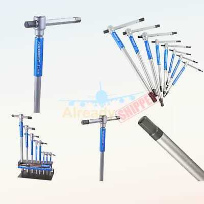 This top-quality T-handle metric hex key wrench set offers speed, strength, style, and precision to spare. Each wrench is constructed of premium chrome vanadium steel for durability and a precise fit into metric hex head fasteners. Slide the T-handle to the center position, hold the free-spinning sleeve on the shaft and tighten or loosen those hex head screws at light speed. Slide the T-handle to the end position and cinch that screw down. Not to brag, but the 10mm wrench has an 11-inch reach. At the other end of the spectrum, the 2mm wrench offers 4 1/2-inches of reach. And every size in between offers way more reach than L-type hex keys. You’ll love the positive grip and precise fit of the friction-treated hex tips offer. That means less chance of rounding and cam-out. These sweet wrenches will never be far out of reach with the included storage rack. Hang it on your tool wall, toss it in a toolbox drawer or set it on your benchtop for easy access.