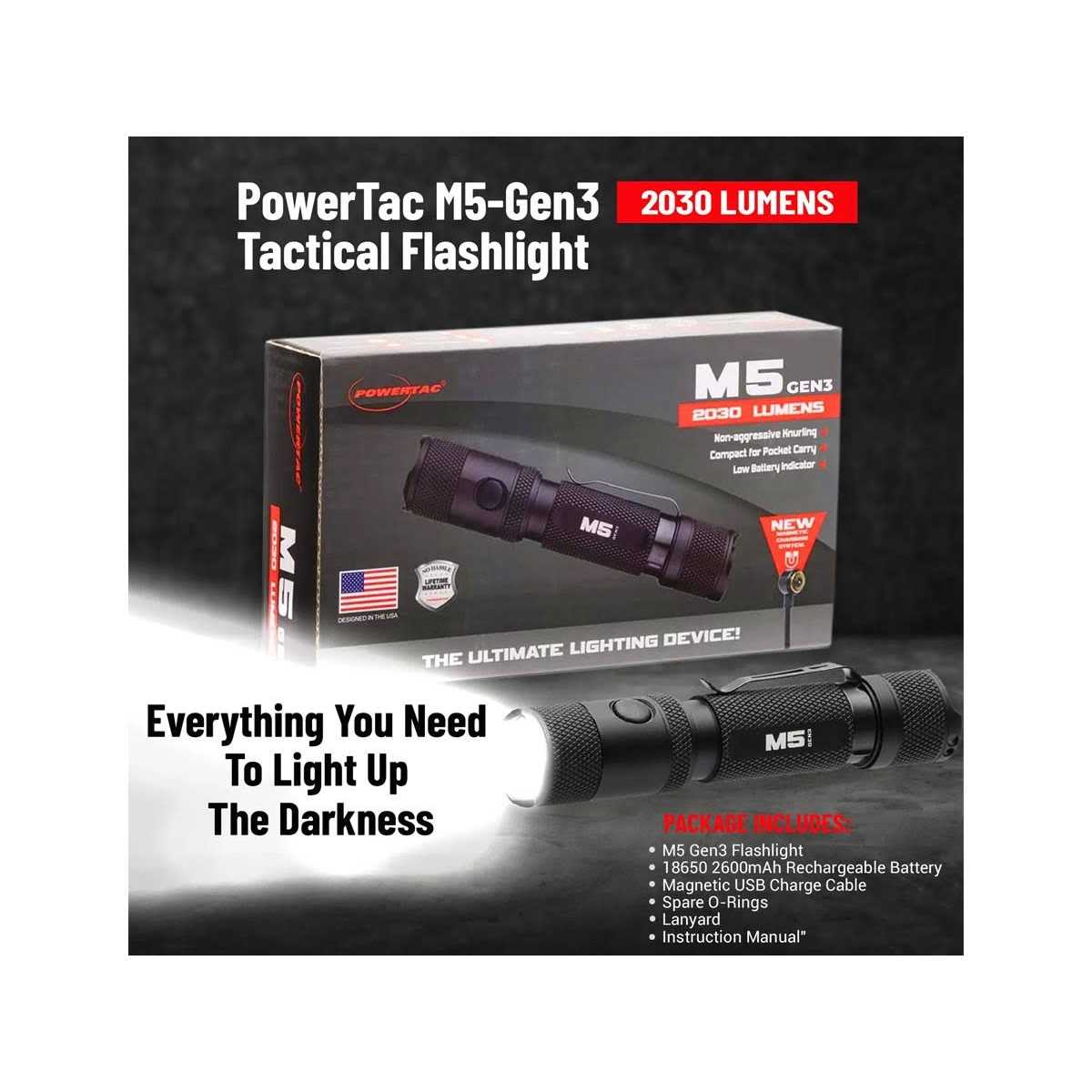 Powertac M5-G3 – 2,030 Lumen EDC Rechargeable Flashlight