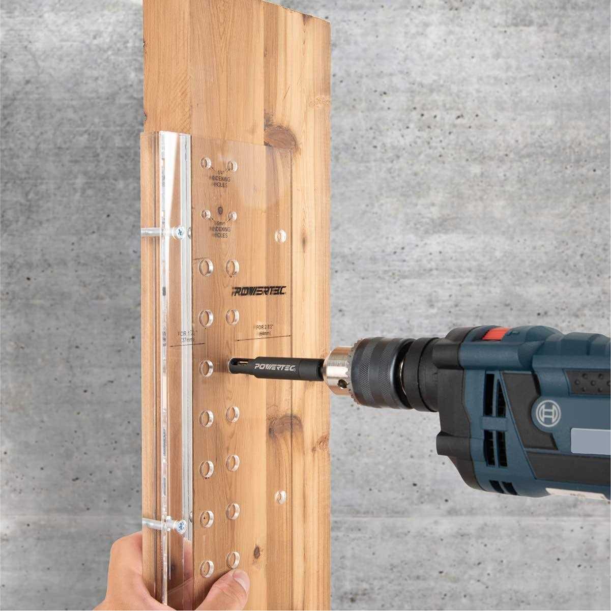 - Jig Accessories by POWERTEC. Details:Introducing the Shelf Pin Drilling Jig w/ 1/4” Self Centering Bit by POWERTEC.