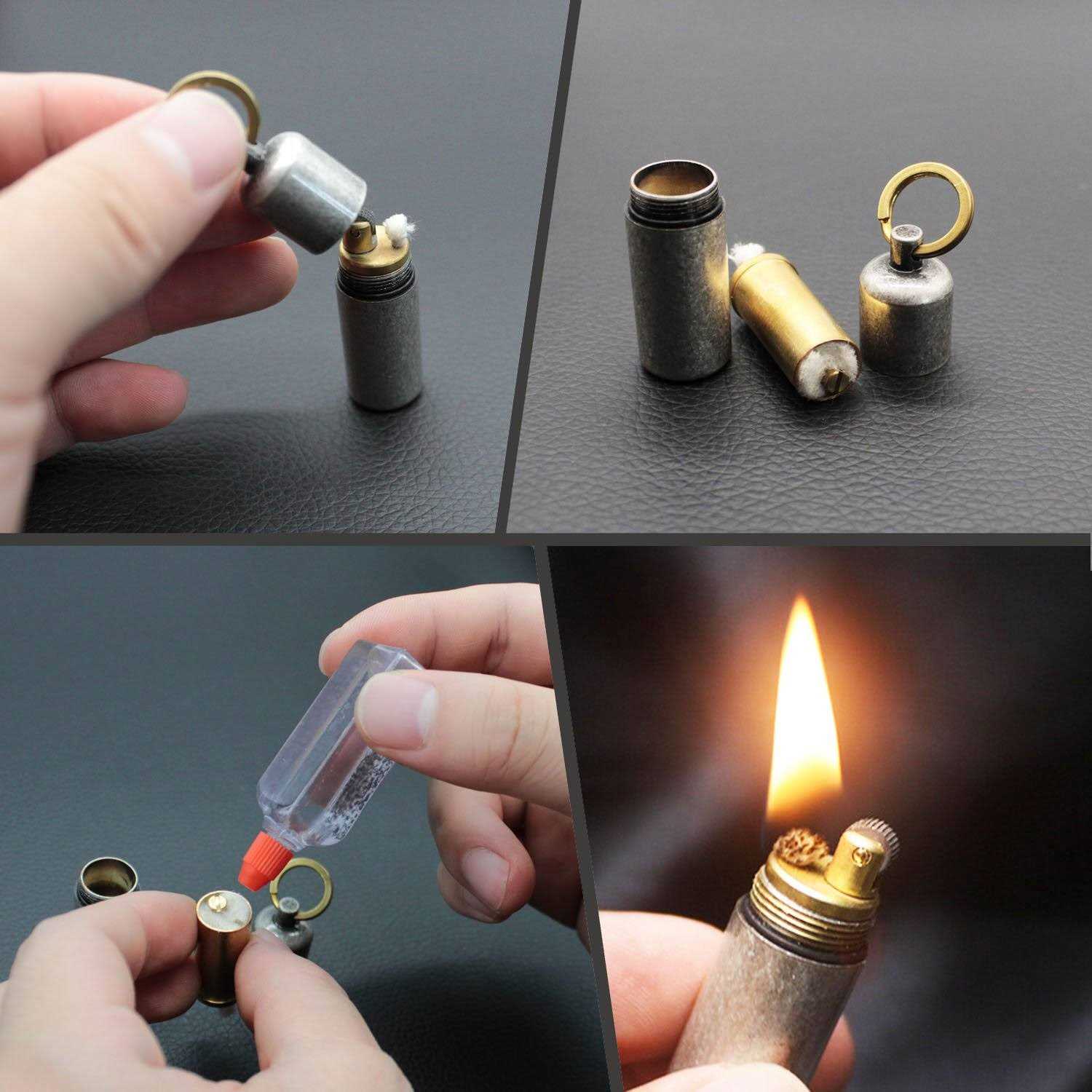 Superior Material – Made of H62 solid brass, sturdy and durable. CNC cutting technology, excellent production. Satisfactory Sealing Performance – Super precision CNC cutting craft, compact thread and Screws on securely. The rubber gasket can prevent the fuel from evaporating, you can carry the peanut lighter in your pocket and trust that it will be ready to make fire when you need it to. Cool Design – Top Keychain design and mini size. This EDC lighter can be easily hung on your backpack or put into your pocket. This is a great backup lighter or camping piece of kit. Widely Application – Perfect for hiking, fishing, camping, hunting, outdoor, daily use or as emergency gear. This little lighter can work in any extreme weather and temperature and the fuel can last a long time. It could be useful in an emergency situation.”