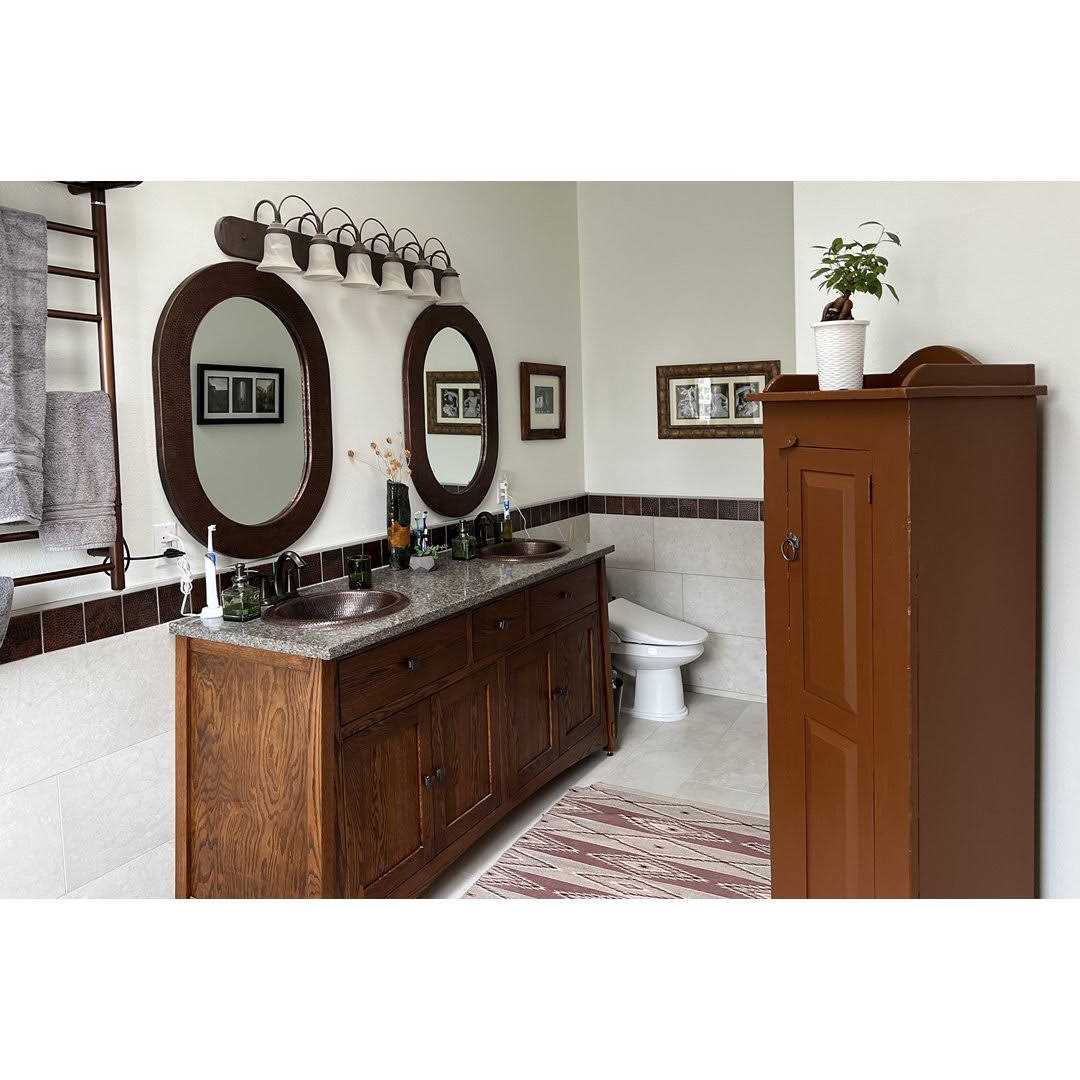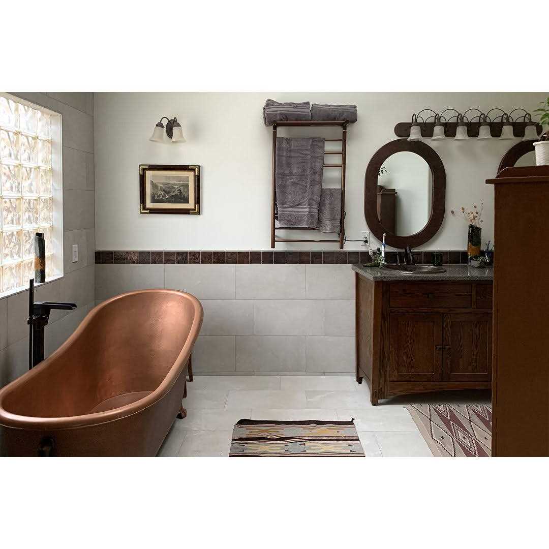 - Hammered copper adds texture and interest to wall