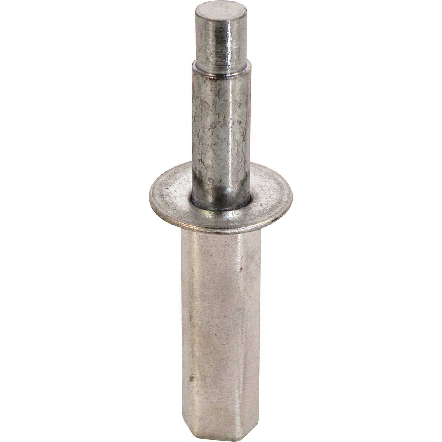Top pivot guide for bi-fold doors has an all steel body and stem with nylon guide cap. Spring loaded 3/8 In. pin inserts into the pivot bracket above creating a top pivot point for the bi-fold door. 1 per card.