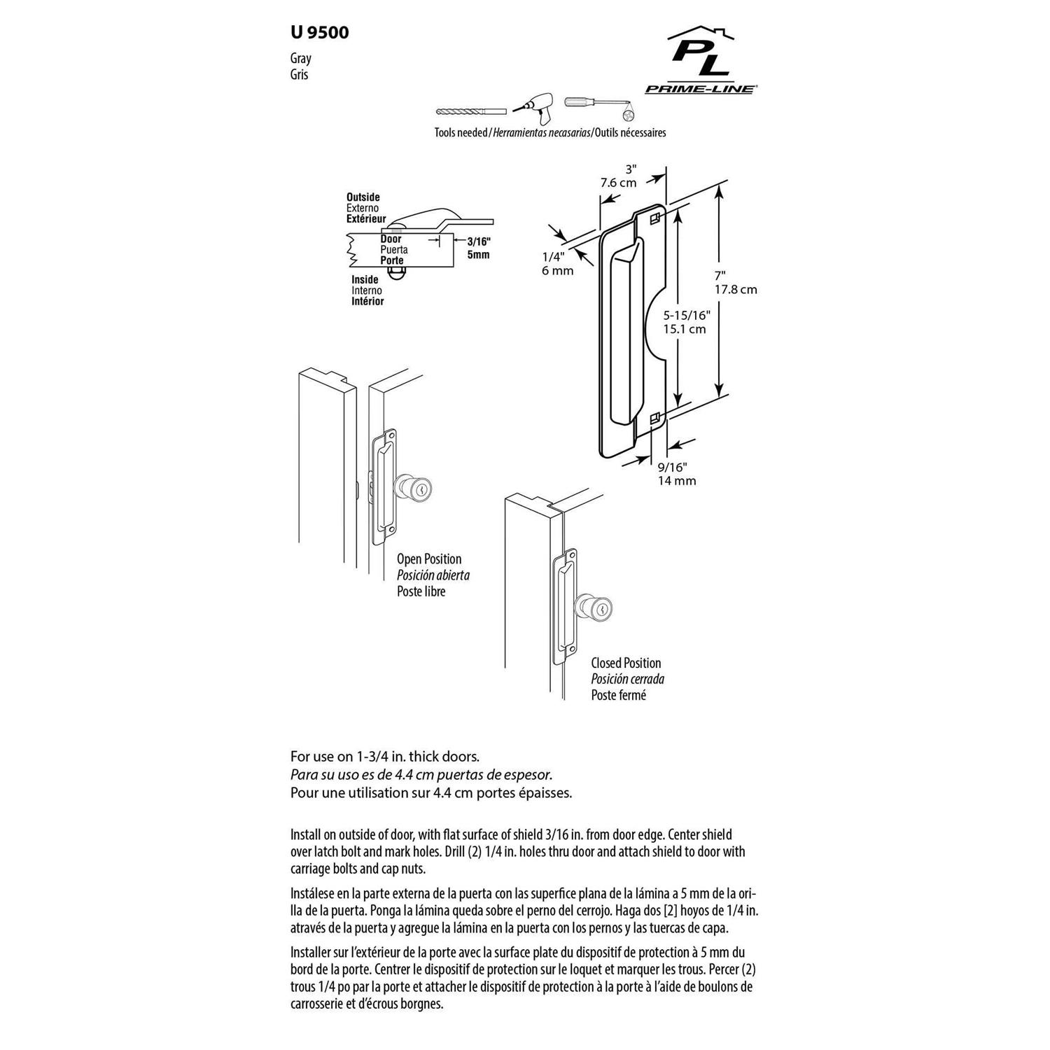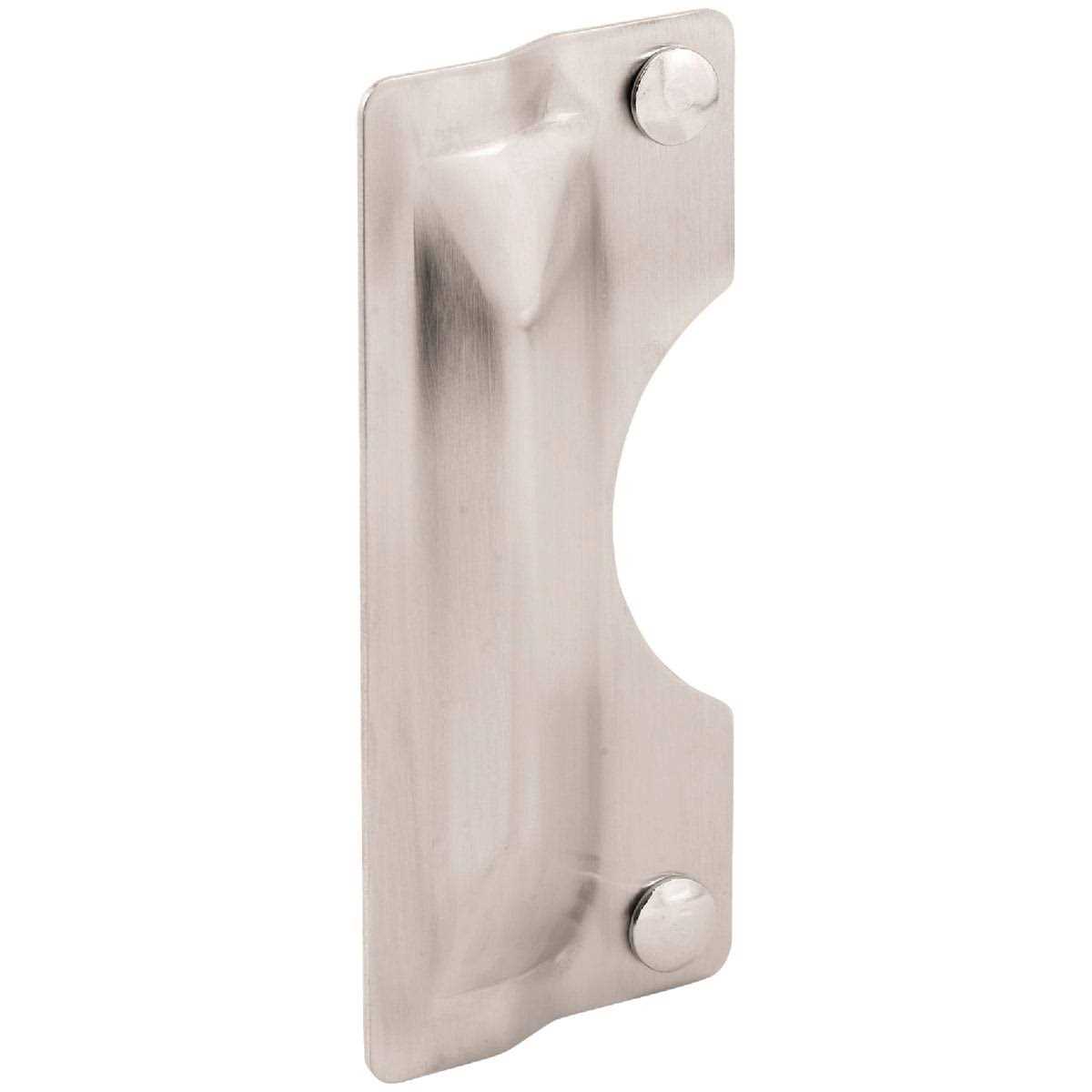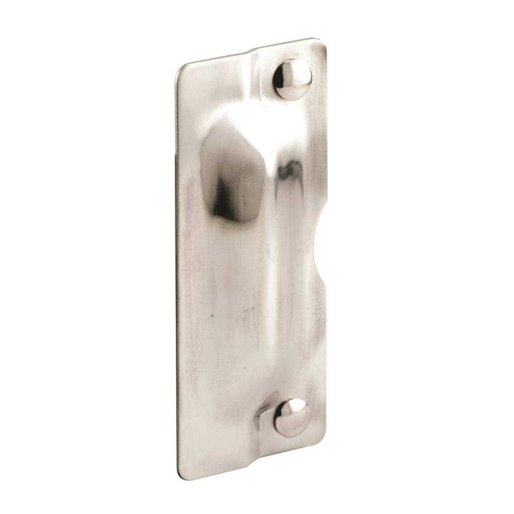 This Prime-Line latch shield is constructed of stamped stainless steel and it comes in a satin finish. These latch shields secure against forced entry on swing-out doors by blocking access to an otherwise, exposed door latch. Each latch shield features a press-formed, rigid support design to prevent prying of the projecting shield. Only two holes are required for the installation of this security device, and it can be used on residential, commercial and industrial applications. Each package includes one shield and two sets of installation fasteners.