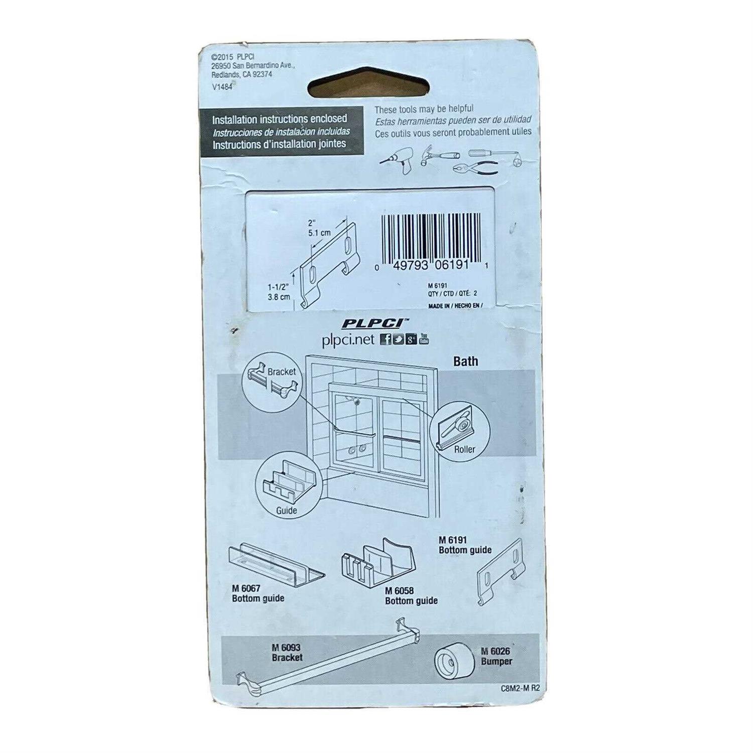Shower Doors by PRIME-LINE. Details: These tub enclosure bottom guides are constructed of plastic and come gray in color. Installation is easy with only two fasteners to replace. These guides are adjustable with the slotted mounting holes provided in each. This shower door guide is constructed from gray plastic. It helps to keep your shower door on its track. This style guide fits on Keystone Brand and similar styled tub enclosures.