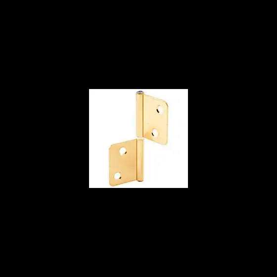This bi-fold door hinge is constructed from steel and comes in a brass-plated finish. It features a non-mortise design for easy installation. This style hinge is used by many wardrobe door manufacturers.