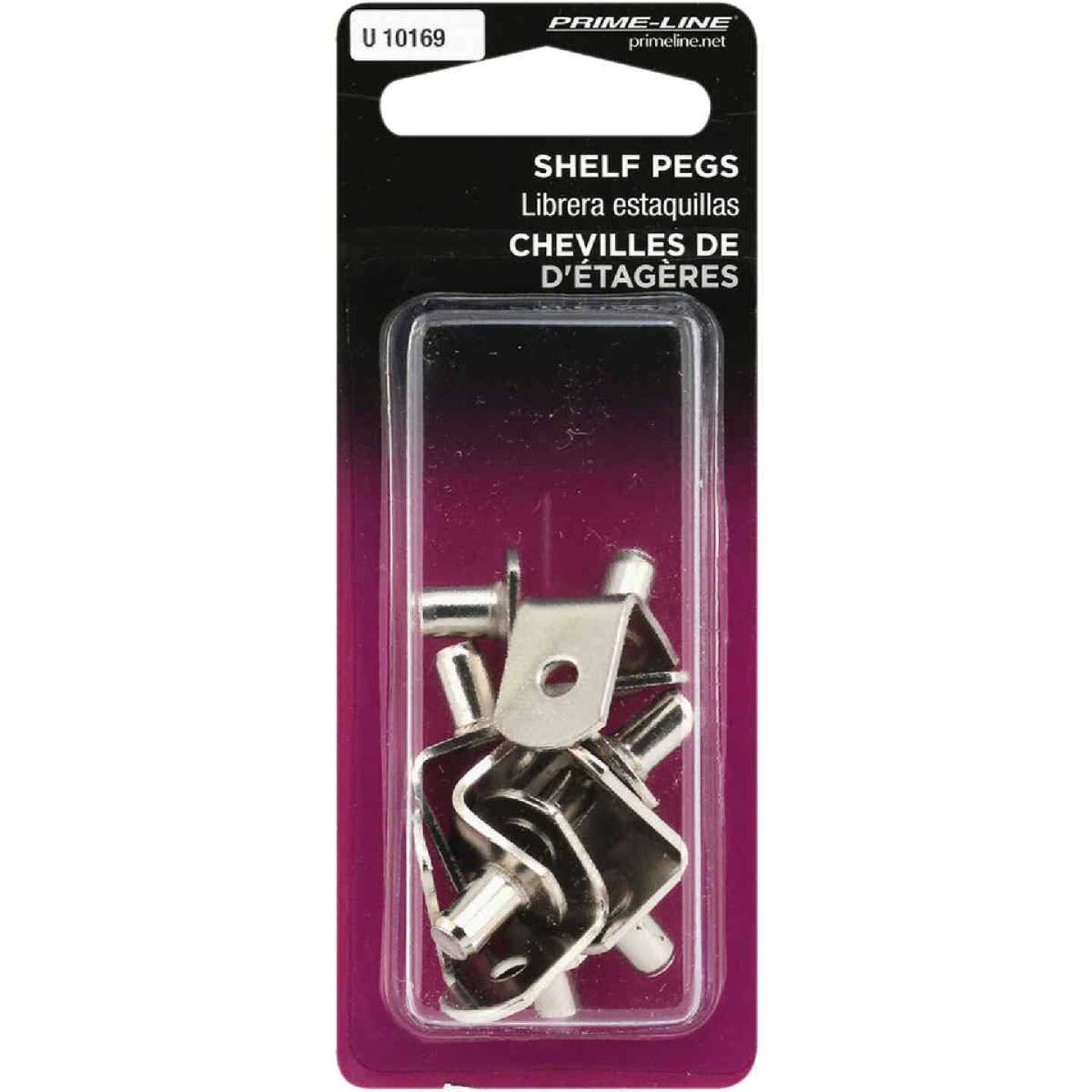 Pegs & Pins by PRIME-LINE. Details: These shelf support pegs are constructed from steel and come plated in a bright nickel finish. They are designed to fit into 1/4 inch diameter holes, making them perfect for many cabinets and bookshelves. Each peg has a 20 lb. maximum safe load capacity. Can be used for a variety of applications. Shelf support pegs are easy to install and are used by a variety of many manufacturers. These pegs fit into the corresponding size holes in the side of your cabinet. The solid pin construction ensures lasting strength. These pegs carry a maximum load capacity of 20 lbs.