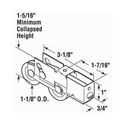 Replace or repair broken or missing sliding door rollers with the Prime-Line D 1791-Sliding Door Wheels Assembly. This adjustable tandem patio door rollers replacement is used by Milgard as well as a variety of other manufacturers. Primarily used on vinyl patio doors. Made of stamped steel housing with concave steel ball bearing rollers in a golden finish, these patio door replacement wheels are strong, durable, and built to last. The housing of the sliding door rollers replacement is 3/4 in. wide and 1 in. tall. A Phillips head screwdriver is required for installation of this roller assembly sliding door. Please refer to the line art drawing and compare with your needs before purchasing.