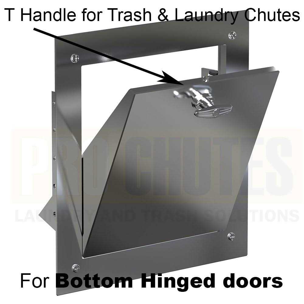 Pro Chutes Trash Chute T Handles and Laundry Chute Door Latch Kit with V Spindle for Bottom & Side Hinged Doors. Compatible Handle Hardware Parts