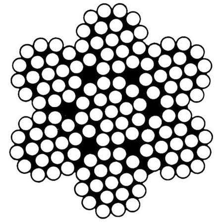 Galv. Cable – 5/16 in. dia. 7×19 construction. 500 ft. reel. Warning Not for aircraft use. Breaking strength 9800 lbs.