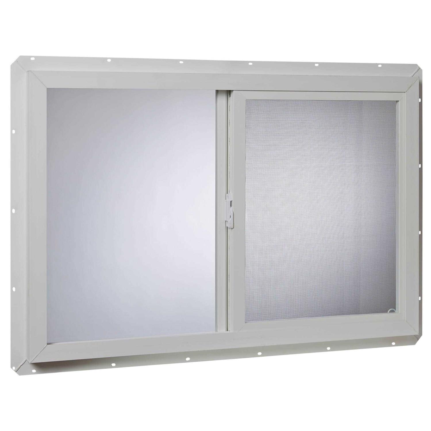 Project Source white vinyl utility slider window is perfect for use in garages porches barns and steel buildings. Single-glazed glass. Solid welded main framesash construction. Rigid vinyl mounting flange. Interlocking panels provide a weather-tight seal. Built-in J-channel accepts all types of sidingfinishes. Actual size is 35-12-in width x 23-12-in height. Nominal size is 36-in width x 24-in height. Rough opening 36-in width x 24-in height.