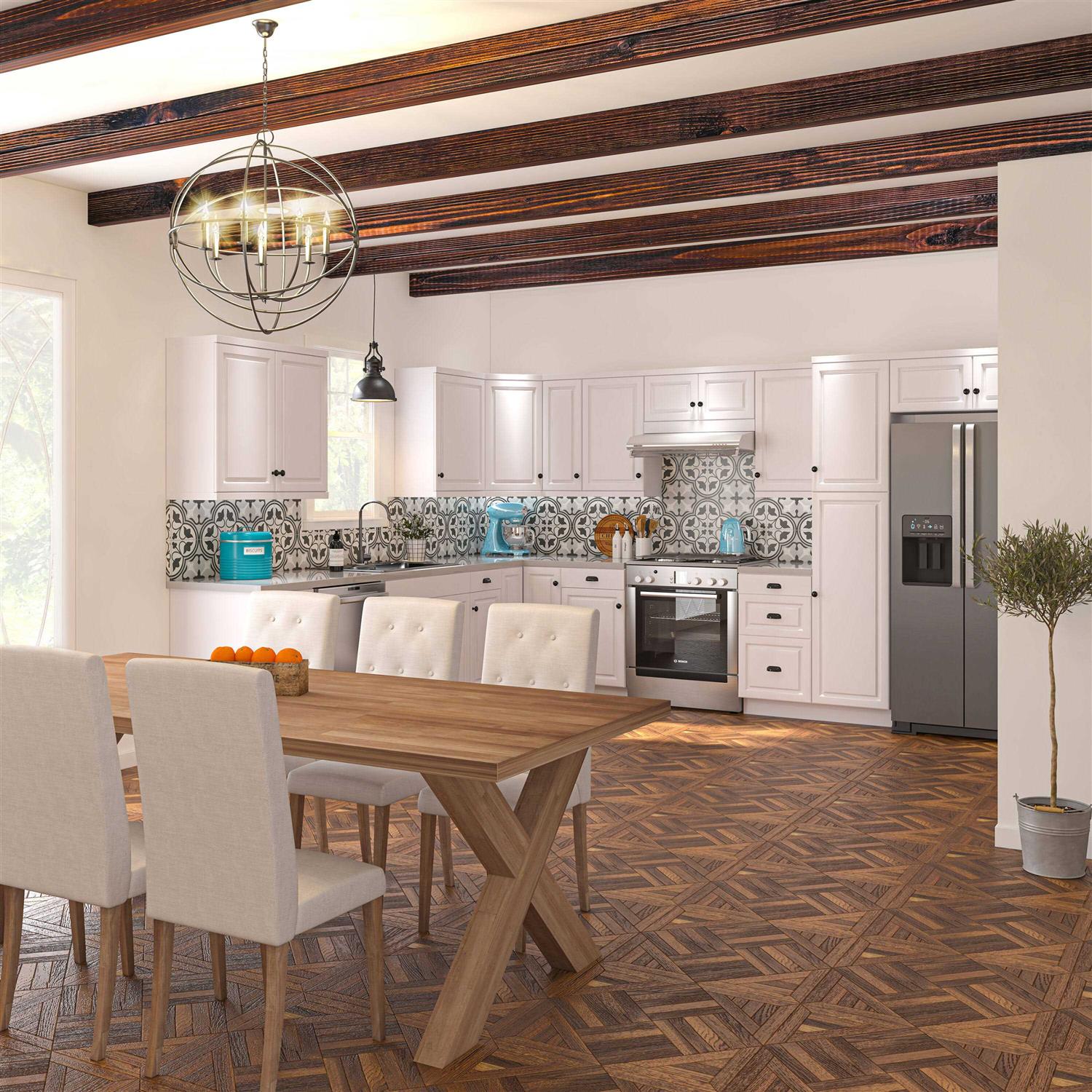 Project Source easy to assemble Cheyenne white cabinets feature a classic raised panel door, full access construction with an affordable solution for your entire home. With the full access modern design, you can maximize storage space and have easier access to your items. The Cheyenne white cabinets have a finished interior and exterior making installation simple and easy. This durable finish is easy to clean and designed to last. All cabinets are constructed with CARB II compliant materials. Take home today and get started on your project now.