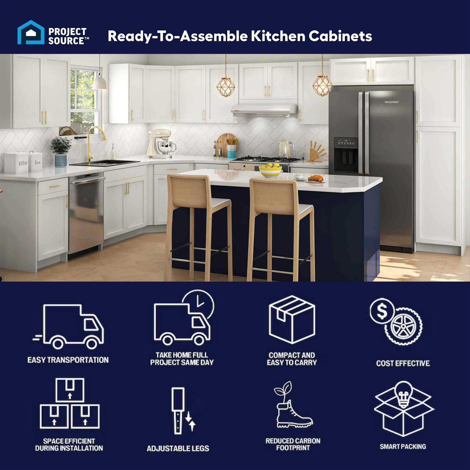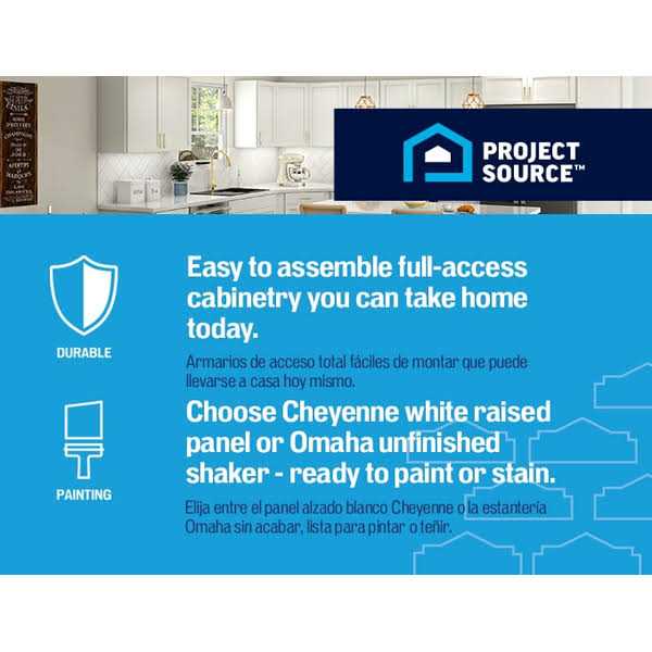 Project Source easy to assemble Omaha unfinished cabinets feature a solid wood door, full access construction with an affordable solution for your entire home. With the full access modern design, you can maximize storage space and have easier access to your items. The Omaha unfinished cabinets are easy to finish for use as a canvas for a unique creative project. All cabinets are constructed with CARB II compliant materials. Take home today and get started on your project now.