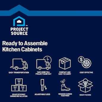 Project Source easy to assemble Omaha unfinished cabinets feature a solid wood door, full access construction with an affordable solution for your entire home. With the full access modern design, you can maximize storage space and have easier access to your items. The Omaha unfinished cabinets are easy to finish for use as a canvas for a unique creative project. All cabinets are constructed with CARB II compliant materials. Take home today and get started on your project now.