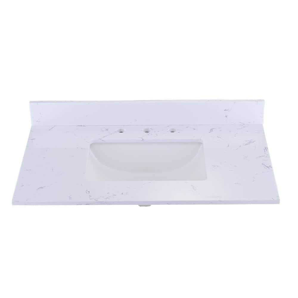 PROOX 36 in. W x 22 in. D Engineered Stone Composite Vanity Top in White with White Rectangular Single Sink