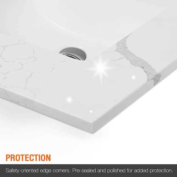PROOX 48 in. W x 22 in. D Quartz White Rectangular Single Sink Bathroom Vanity Top in Calacatta White