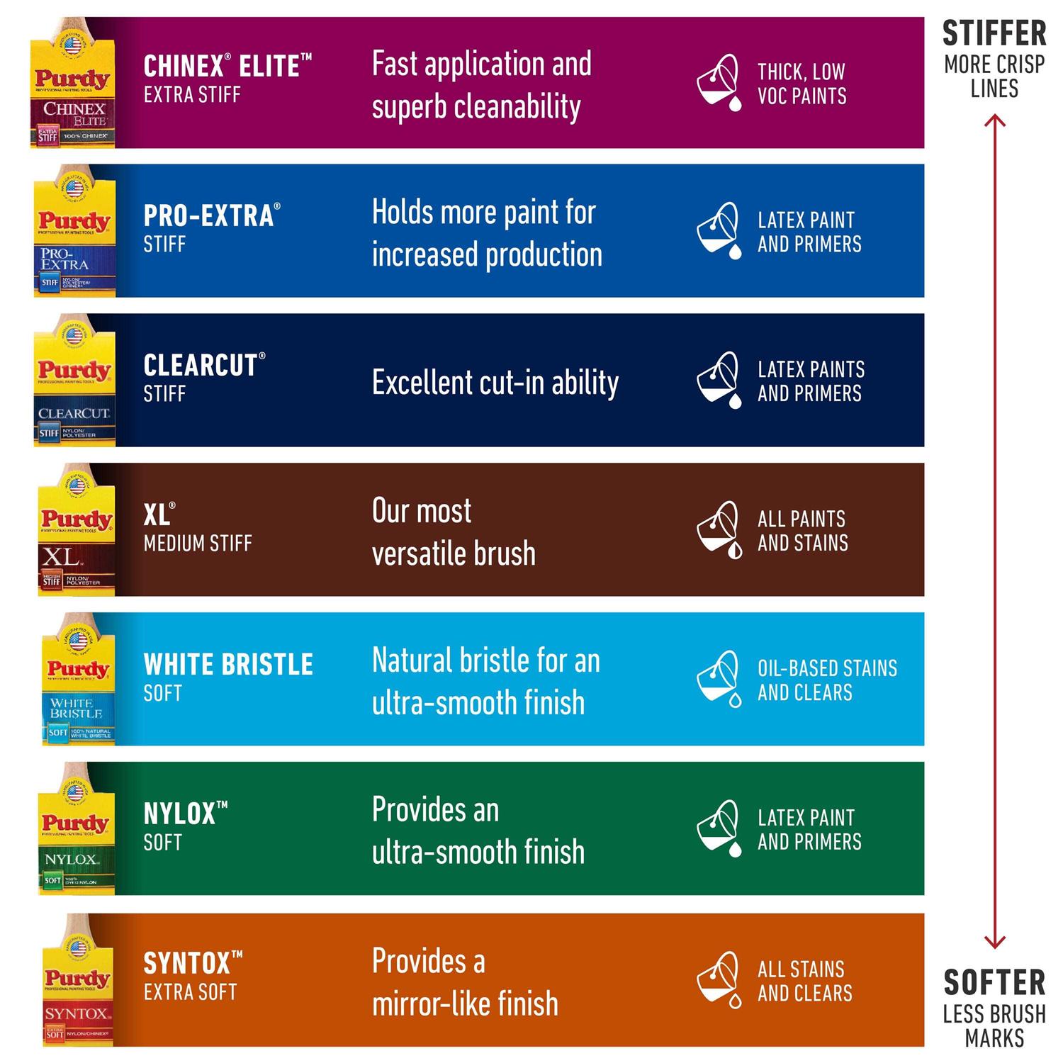 Angular Sash and trim brush. Satin-edge nylon and Orel polyester filaments. XL brushes are highly recommended for both interior and exterior painting projects with all paints. The stiffness retention of XL brushes makes them especially high-performing for outside painting under hot and humid climate conditions. Each XL brush style has its own unique hand chiselled formulation for maximum paint lift and smooth, no-drag application. The XL brushes are our most popular and widely used series. Highly recommended for both interior and exterior painting projects. The stiffness retention of XL brushes (from the polyester content) makes them especially suited for outside painting under hot and humid climate conditions. Only DuPont’s finest solid, round, tapered (SRT) Tynex nylon and Orel polyester filaments are used and our special tipping and flagging process brings our synthetic filaments as close to naturally flagged bristle as possible. Each XL brush style has its own unique hand-chiselled formulation for maximum paint lift and smooth no-drag application.