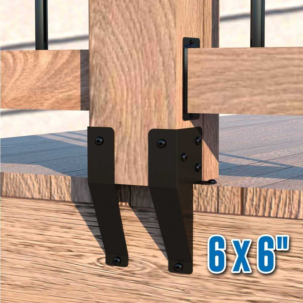 The post bracket allows you to secure a pole to the edge of the floor of a patio or terrace. Increase the usable floor area with a 4 ft. x 4 ft. or 6 ft. x 6 ft. post. This product is compatible with line posts and corner posts. The fasteners are included. Durable powder coat paint Easy to install Extra stable and sturdy Increase deck floor area Improve the look of your outdoor space by adding this Pylex Outaboundz Post Bracket.