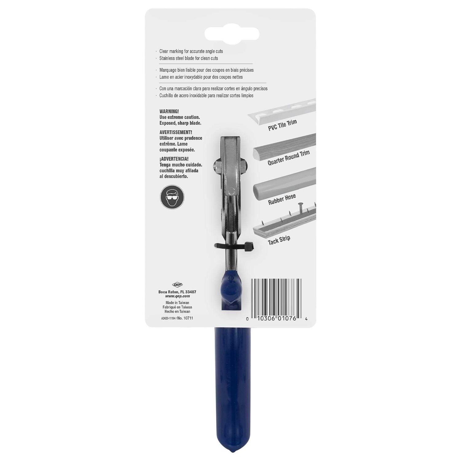QEP Multi-Use Trim Shears easily cut light materials, such as quarter rounds, with extreme precision. The miter guide is marked at 45°, 90° and 120° for quick, accurate angle cuts. The cushioned grip is comfortable for repeat use. Makes angle cuts on a variety of materials Durable anti-rust blade Comfortable cushioned grip Make fast cuts at any angle in wood quarter rounds, tile trim, PVC piping, rubber hose, tack strip and other materials Rustproof, stainless steel blades for quick, clean cuts and long-lasting use Miter guide is clearly marked at 45°, 90° and 120° Cushioned grip reduces hand fatigue for comfortable repeat use Eliminates the need for a chop or miter saw Comfortable in either right or left hand Locking pin for safe, easy storage and to keep unwanted objects from coming in contact with the blade Complete your tile installing work perfectly and professionally with the assistance of this amazing QEP MultiUse Trim Shears for Angle Cuts.