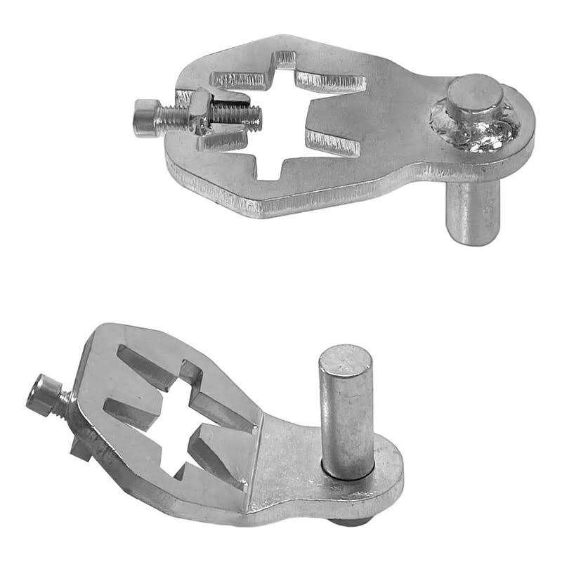 Solid T-Post Gate Hinge Pins are made of heavy duty steel, sturdy and durable, and not easy to rust or oxidize Easily hang gates from metal T-posts. Hang and hold any farm or garden gate with 5/8” or 3/4″ hinge eyes from a standard Metal T-post. Package Includes: Installation instruction, top Hing Pin, bottom Hing Pin, Allen Key, Hexagon screw and Nut. Perfect for farms and gardens. Allows gate to swing 200+o.