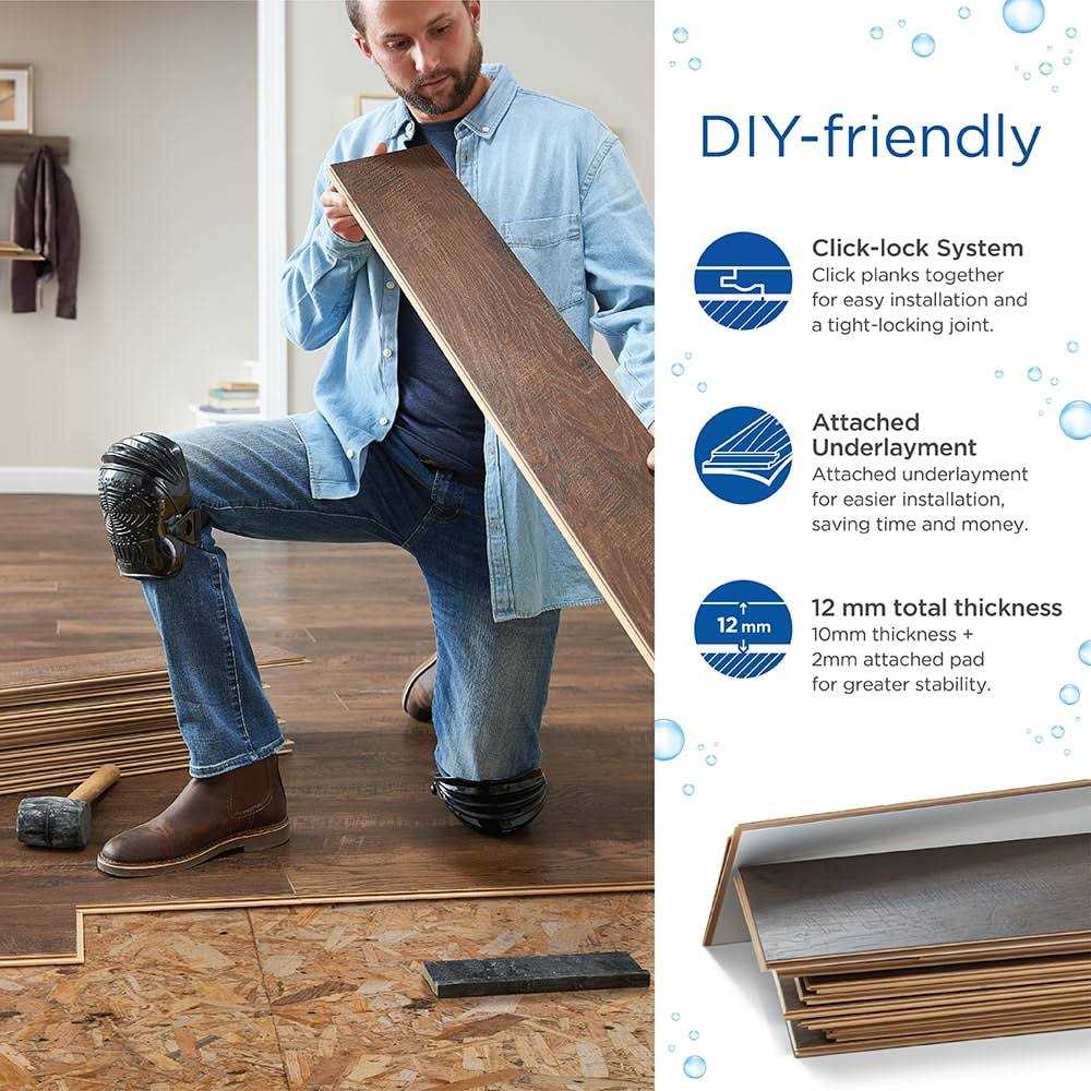 - The click-lock system requires no glue and makes this water-resistant floor easy to install –– coordinated moldings available